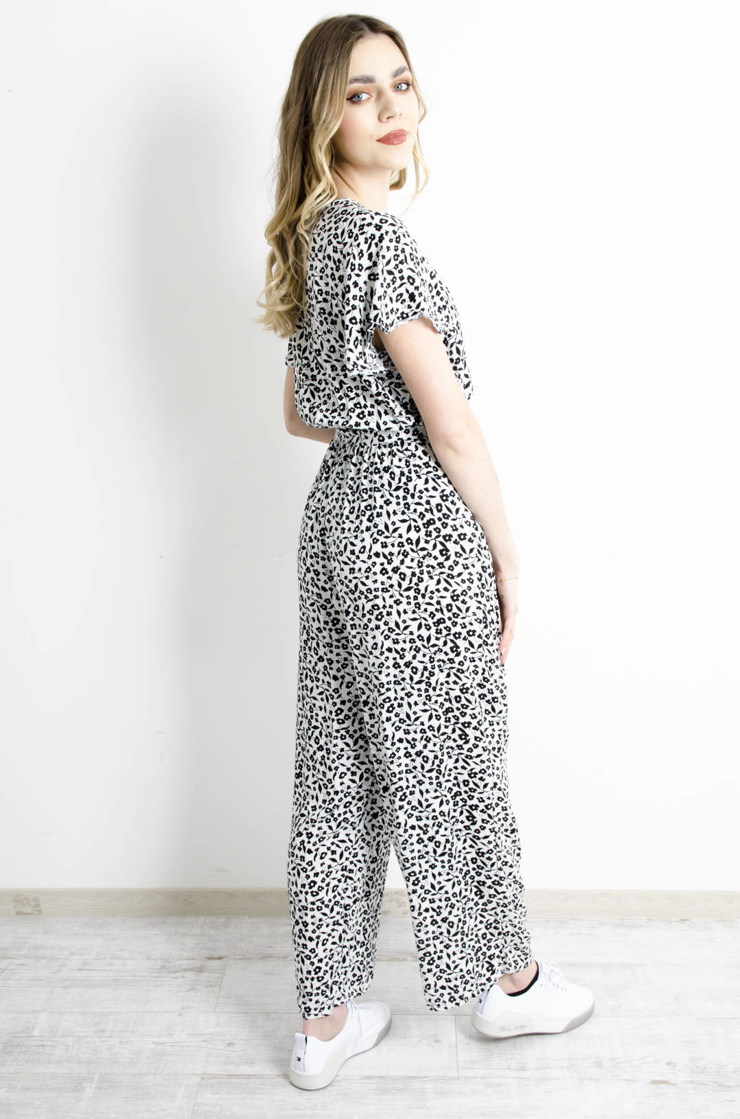 KOMBINEZON W KWIATY - BIAŁY