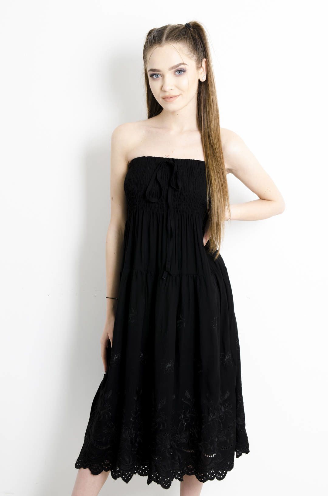 SUKIENKA MIDI Z WIĄZANIEM NA SZYJĘ - CZARNA