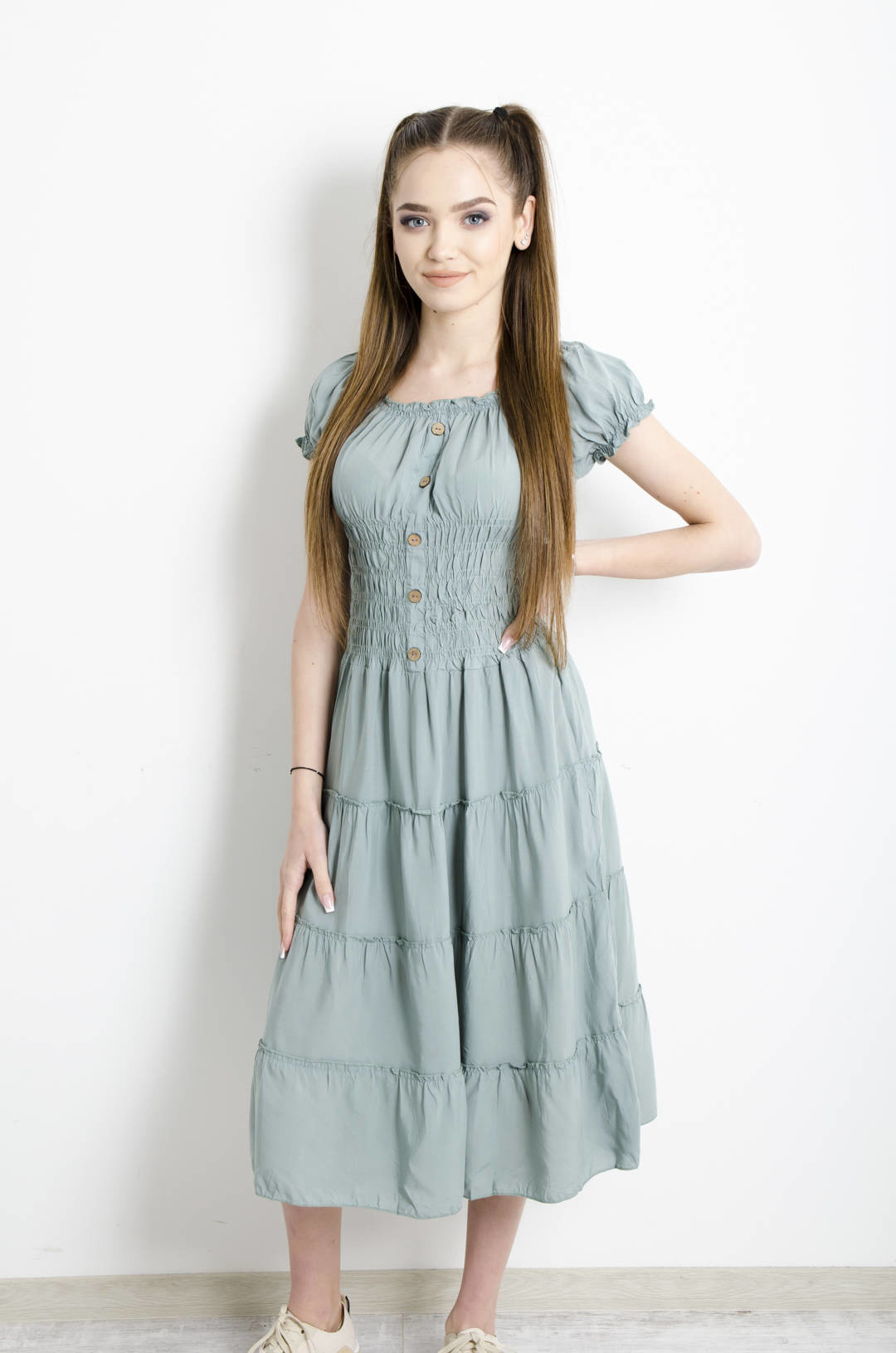 SUKIENKA HISZPANKA MIDI Z GUMĄ W PASIE- ZIELONA
