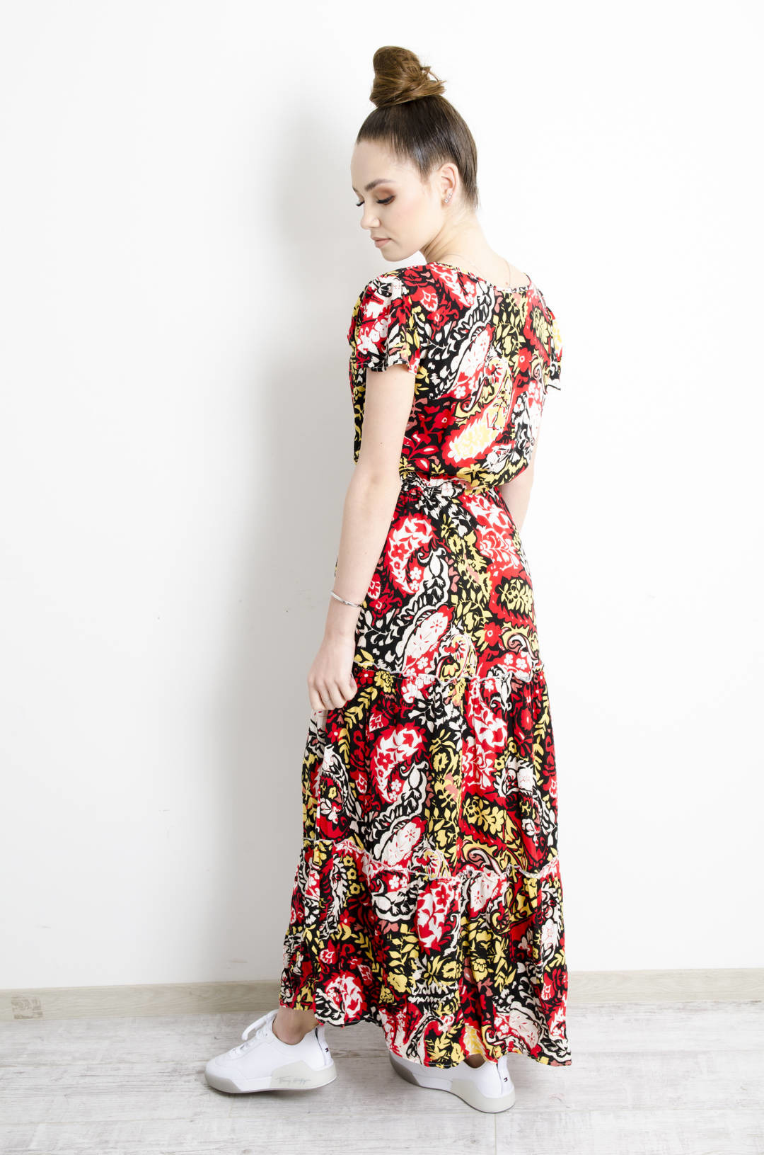 SUKIENKA MAXI WZORZYSTA WIĄZANA W PASIE- CZERWONA