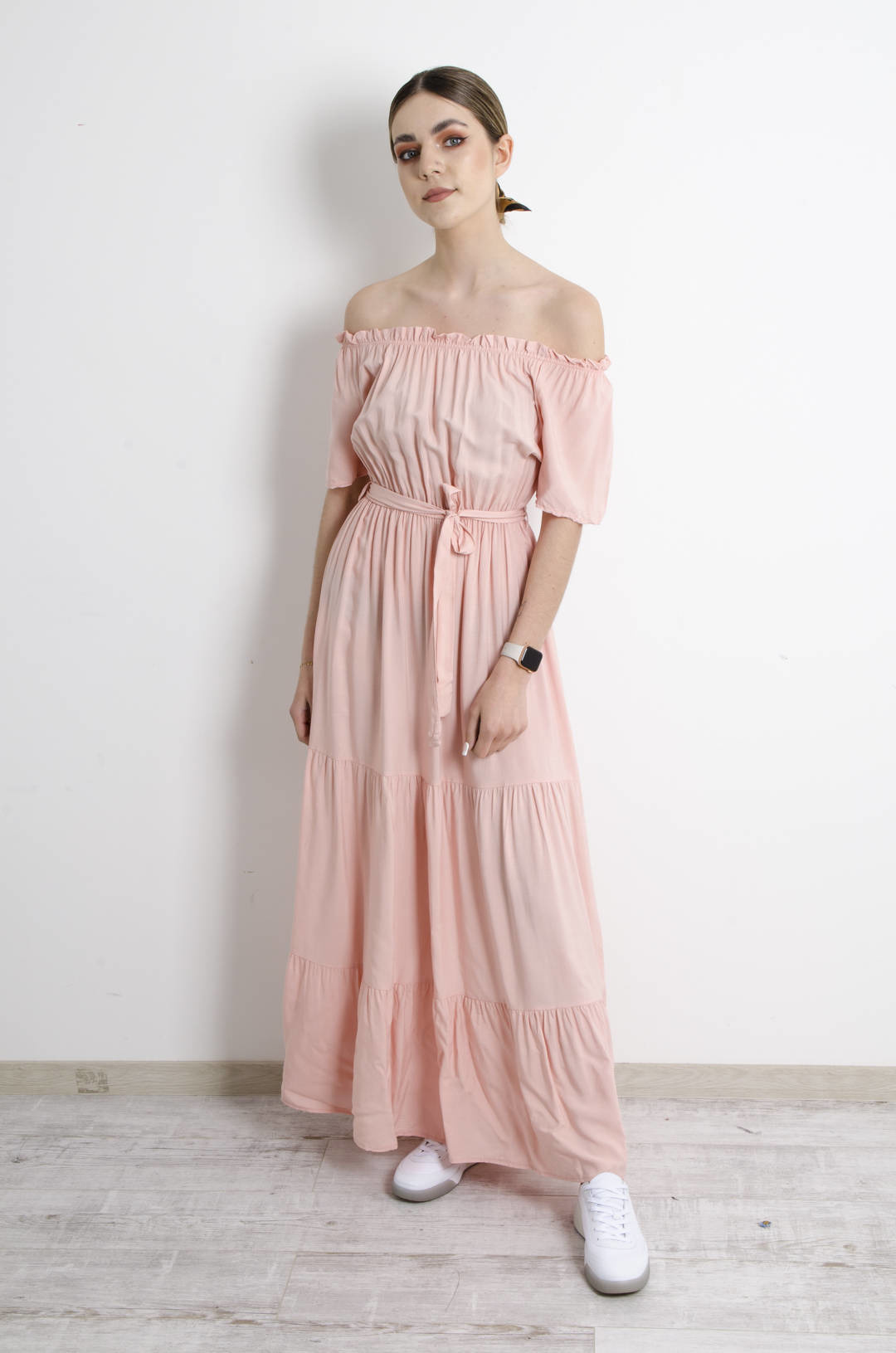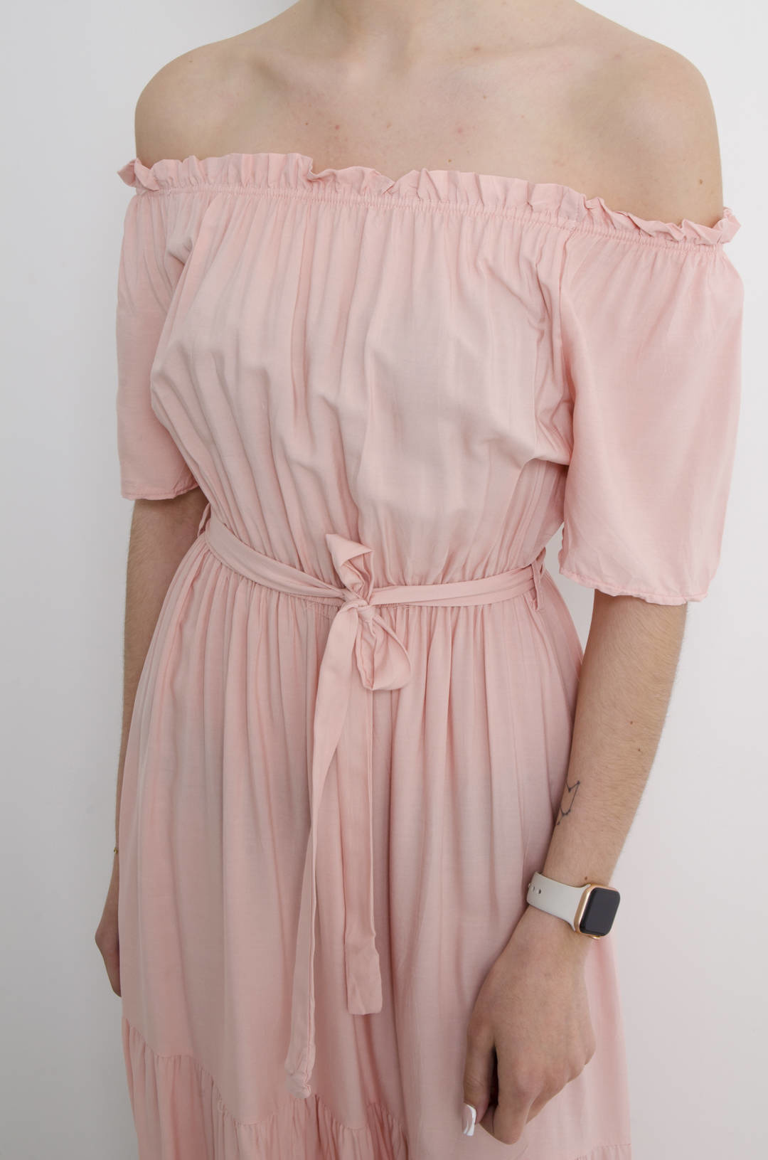 SUKIENKA MAXI HISZPANKA Z WIĄZANIEM W PASIE- RÓŻOWA