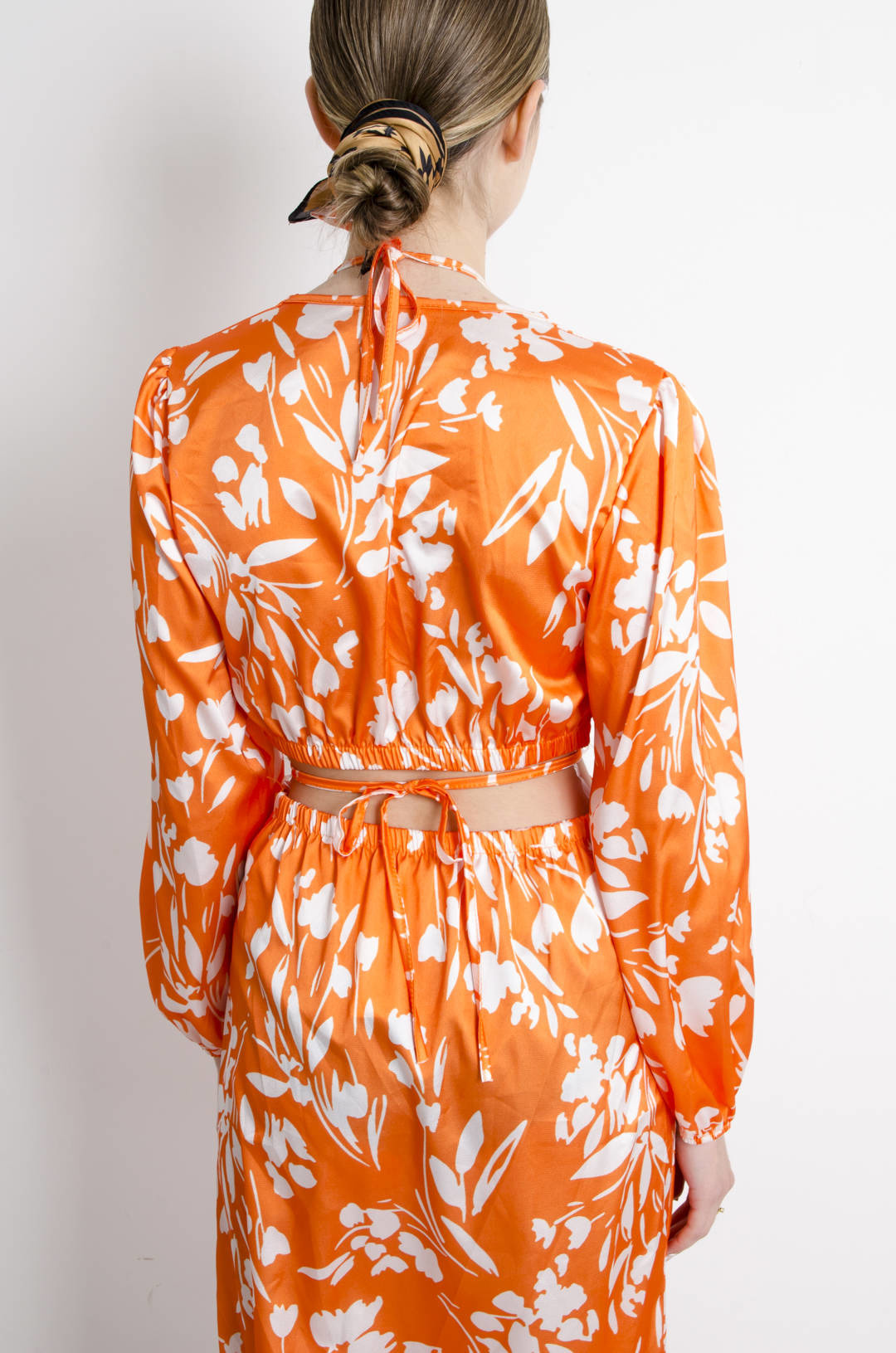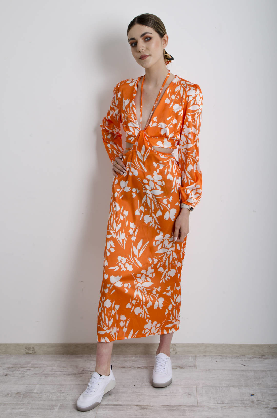 SUKIENKA POMARAŃCZOWA W KWIATY Z WYCIĘCIEM