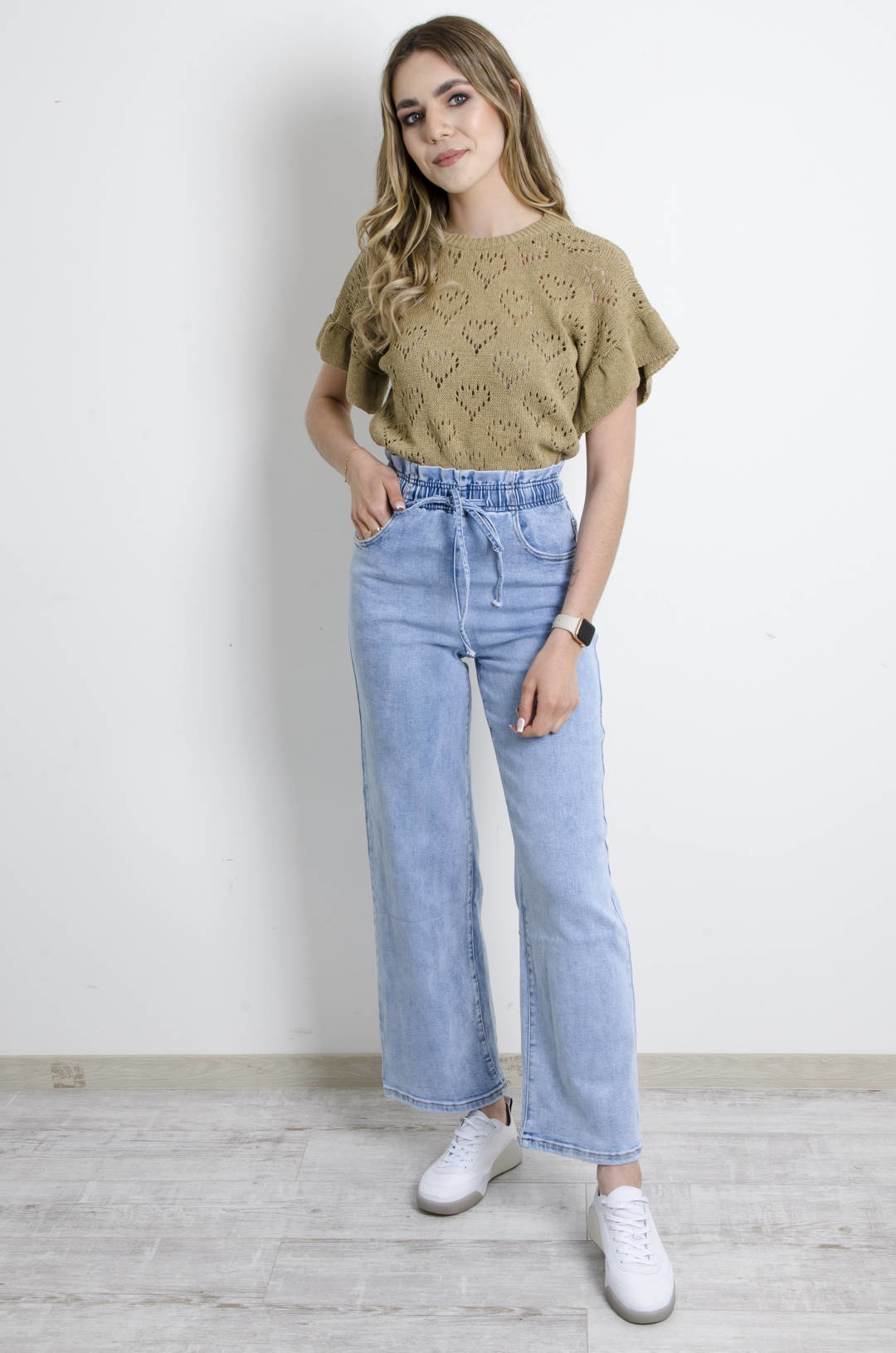 SPODNIE JEANSOWE Z GUMĄ W PASIE- SZEROKIE NOGAWKI