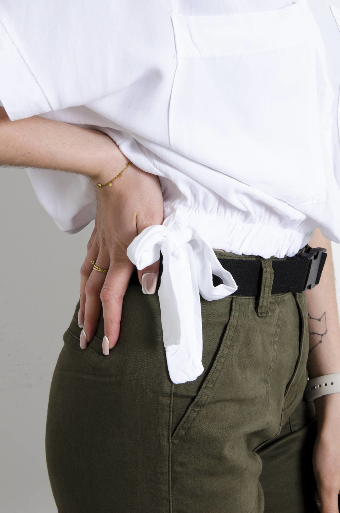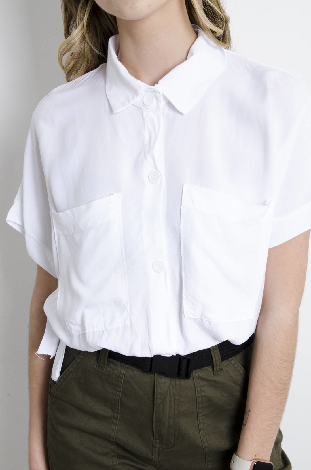 KOSZULA WIĄZANA Z KIESZENIAMI - BIAŁA