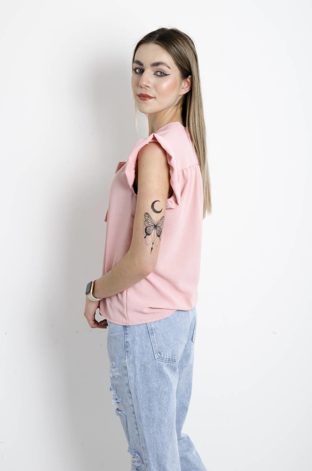 BLUZKA Z WIĄZANIEM RÓŻOWA