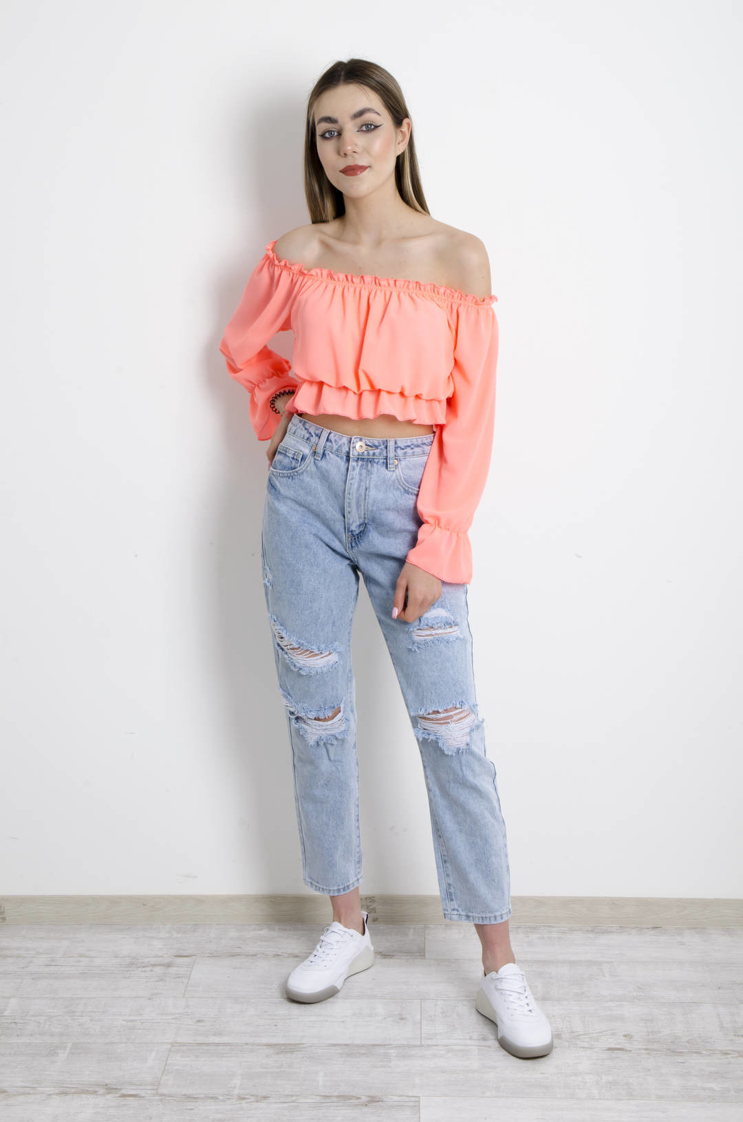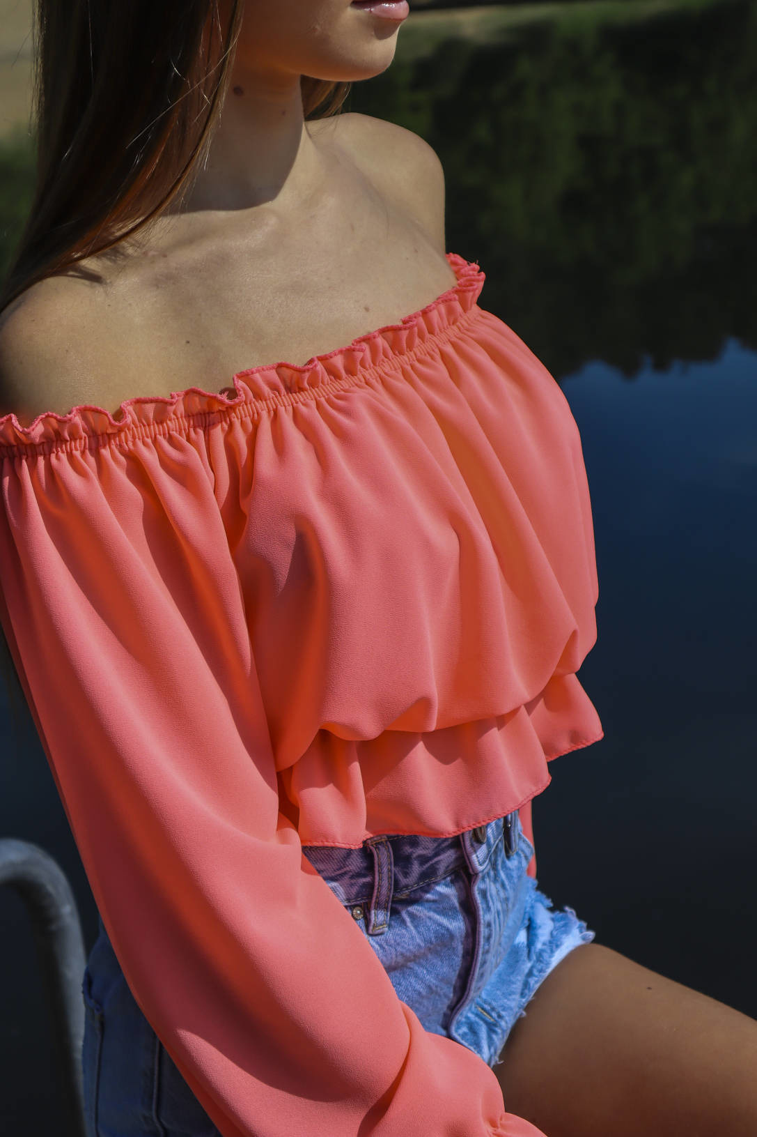 BLUZKA HISZPANKA NA DŁUGI RĘKAW - POMARAŃCZOWA