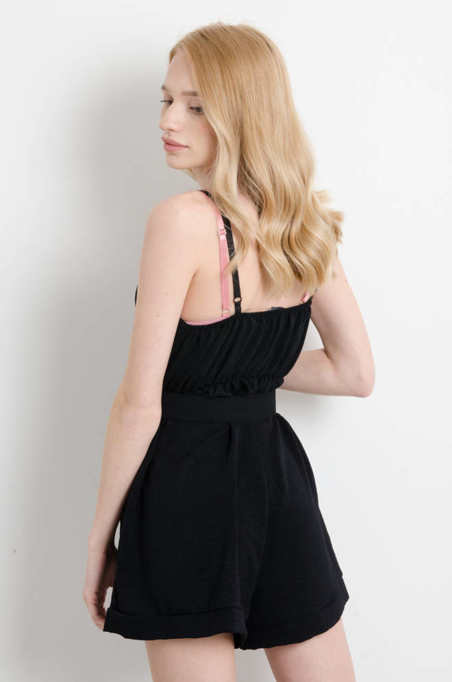 KOMBINEZON NA CIENKICH RAMIĄCZKACH Z PASKIEM- CZARNY