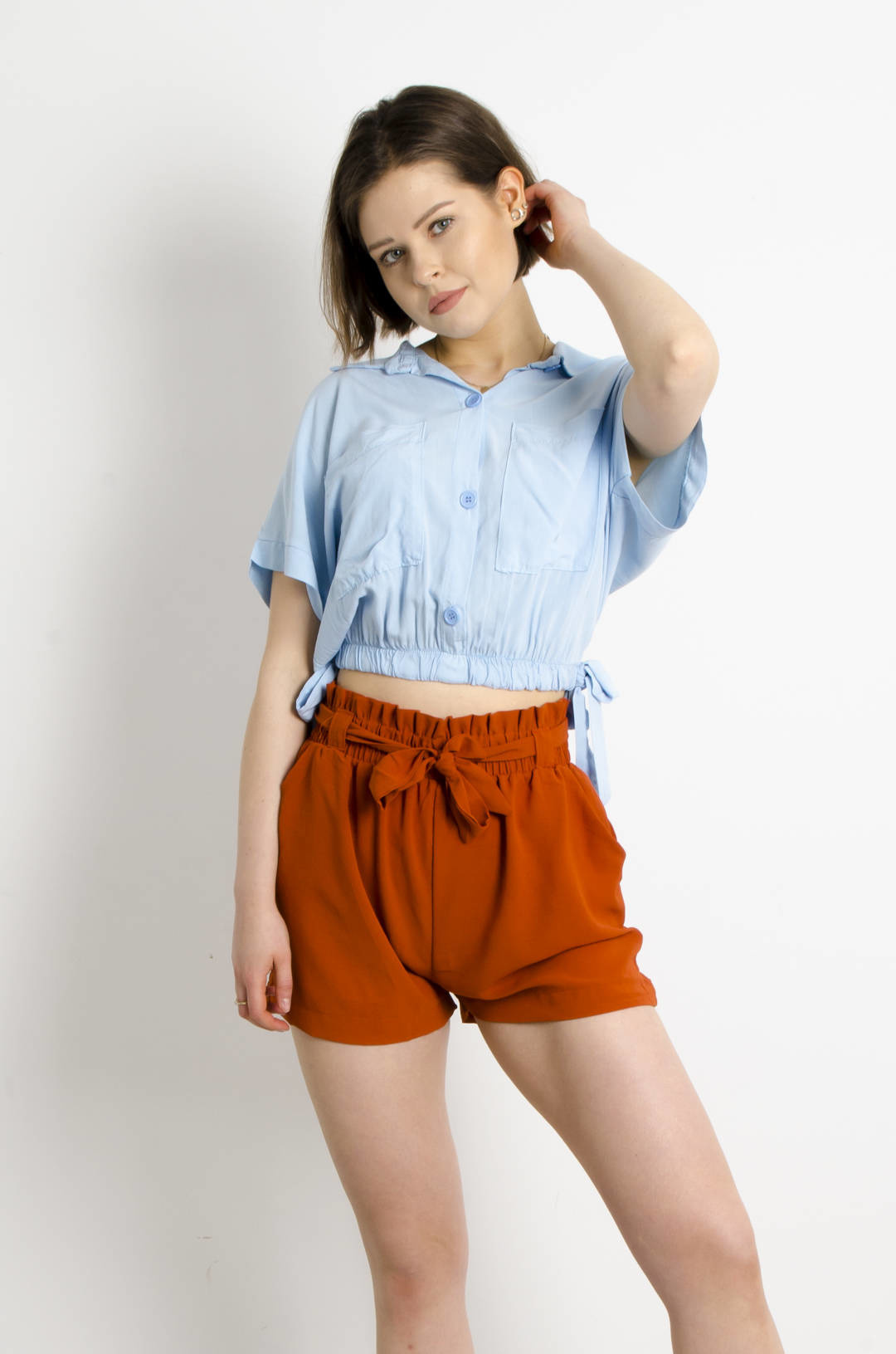 SZORTY MATERIAŁOWE Z WYSOKIM STANEM- POMARAŃCZOWE