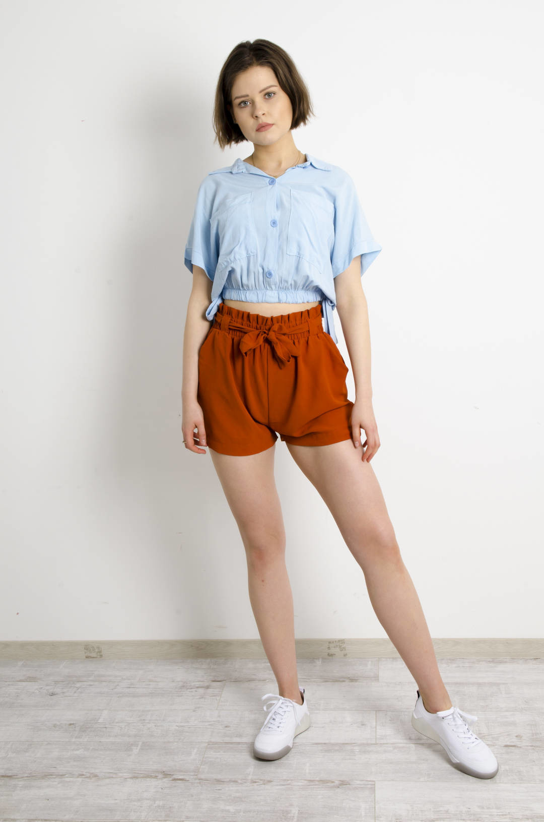 SZORTY MATERIAŁOWE Z WYSOKIM STANEM- POMARAŃCZOWE