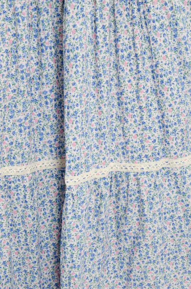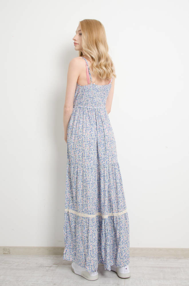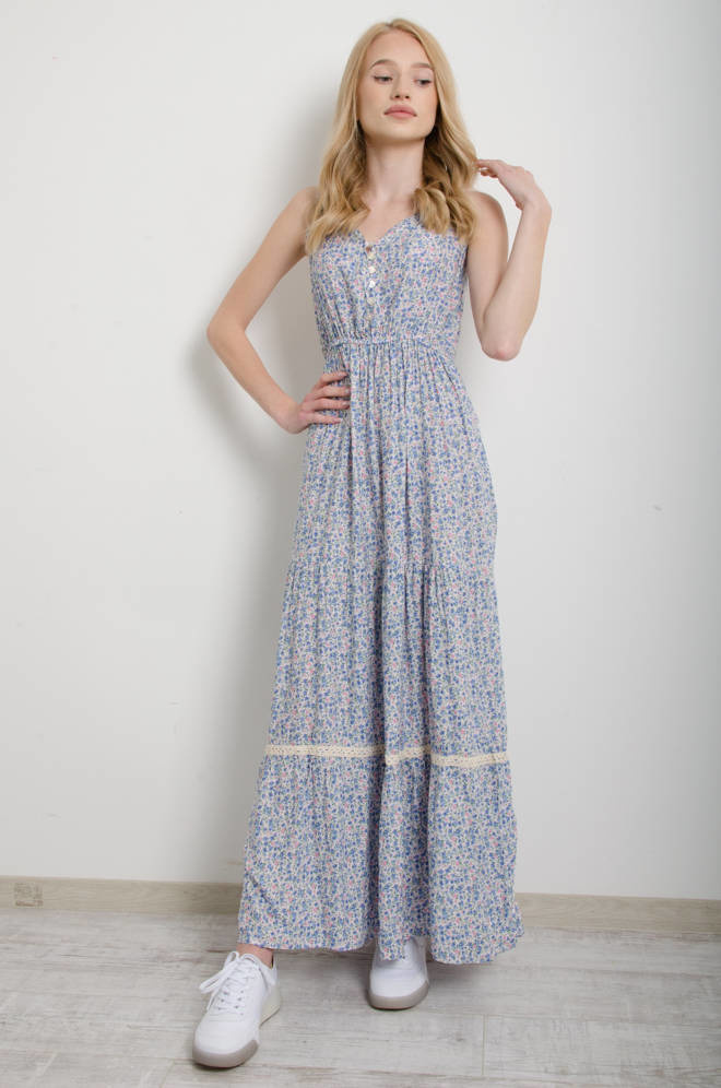 SUKIENKA W KWIATY NA CIENKICH RAMIĄCZKACH MAXI - NIEBIESKA