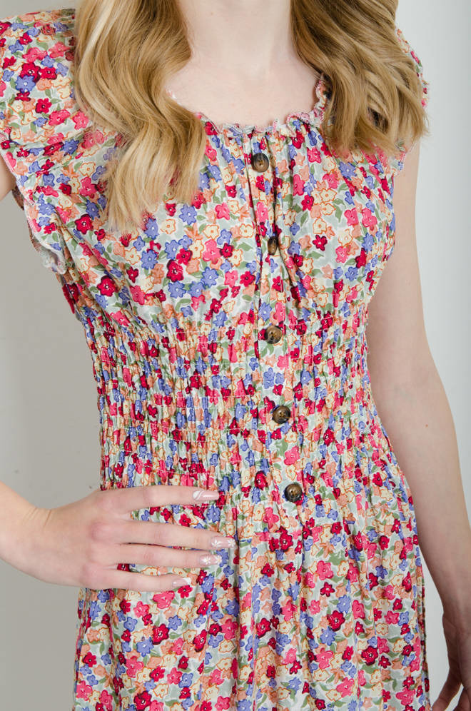 SUKIENKA HISZPANKA W KWIATY MIDI- RÓŻOWA