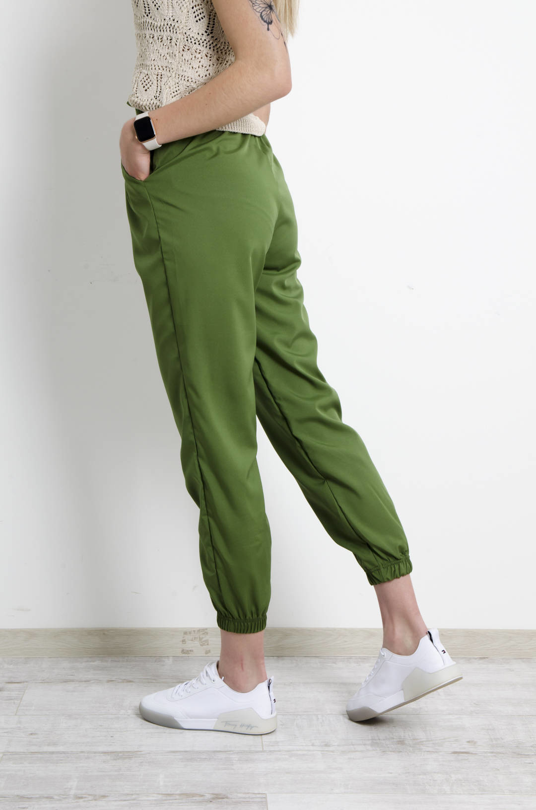 SPODNIE MATERIAŁOWE Z GUMĄ W PASIE- ZIELONE