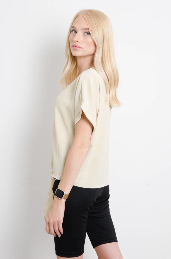 BLUZKA Z WIĄZANIEM DEKOLT V - BEŻOWA