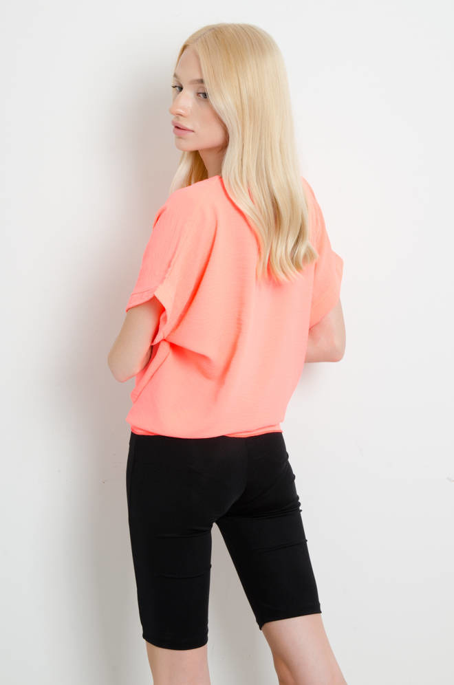 BLUZKA Z WIĄZANIEM DEKOLT V - POMARAŃCZOWA