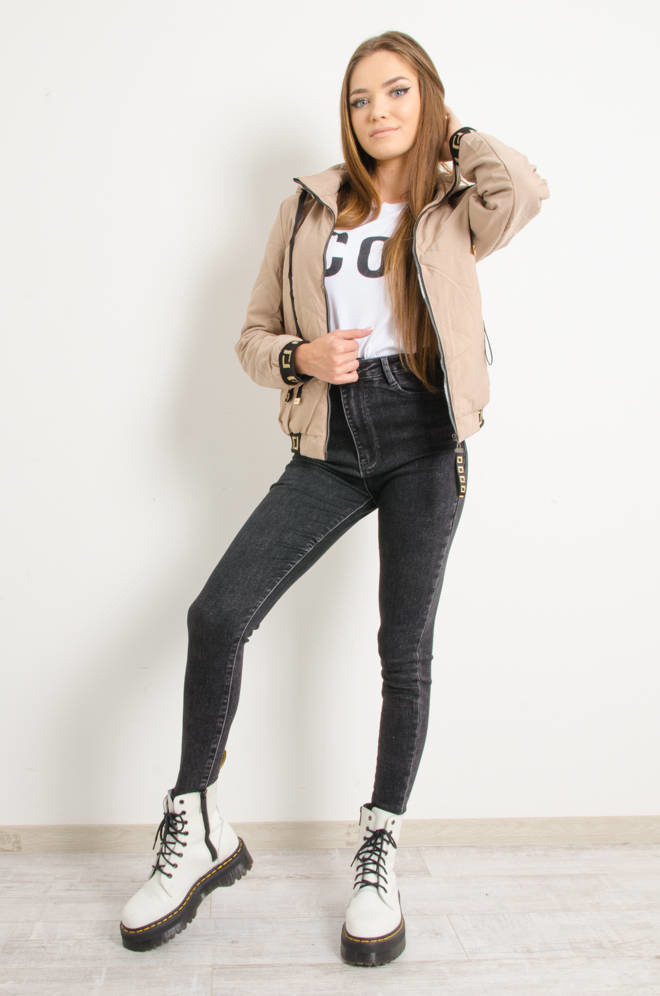BEŻOWA KURTKA Z WZORZYSTYMI ŚCIĄGACZAMI I KAPTUREM