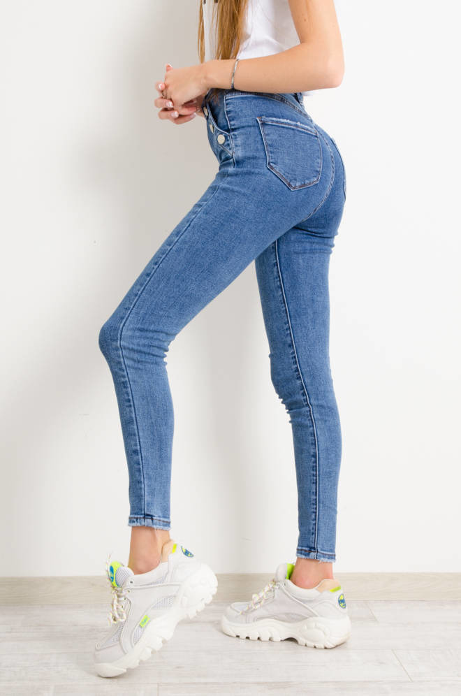 SPODNIE JEANSOWE Z OZDOBNYMI GUZIKAMI PRZY KIESZENIACH- BARDZO WYSOKI STAN