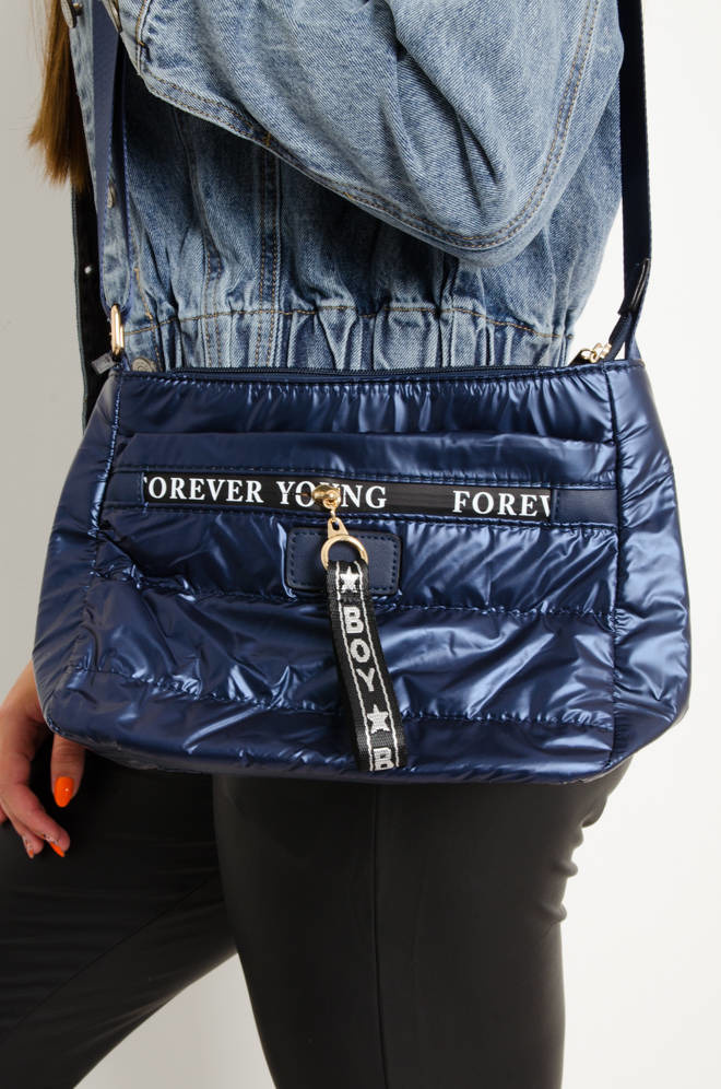 TOREBKA PIKOWANA Z MATERIAŁOWYM PASKIEM- GRANATOWA