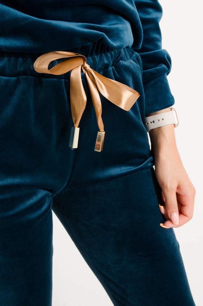 KOMPLET DRESOWY WELUROWY Z OZDOBNĄ NASZYWKĄ- CIEMNY TURKUS