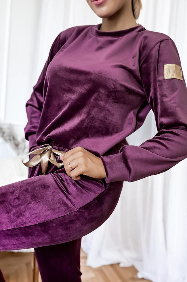 KOMPLET DRESOWY WELUROWY Z OZDOBNĄ NASZYWKĄ- FIOLETOWY