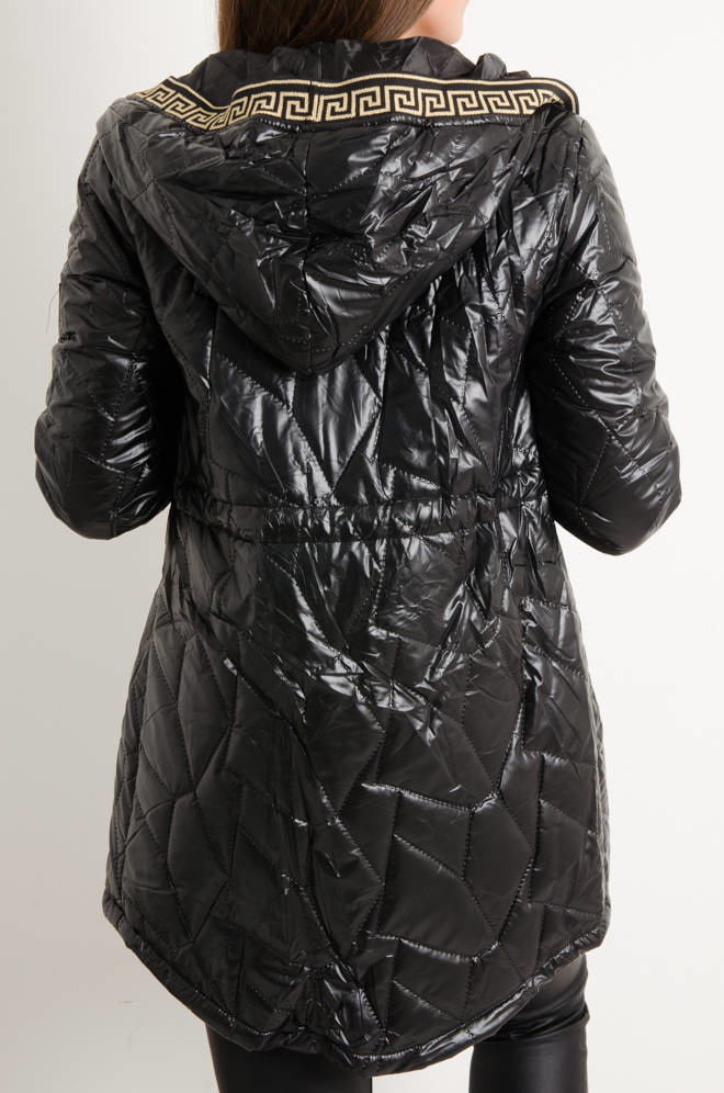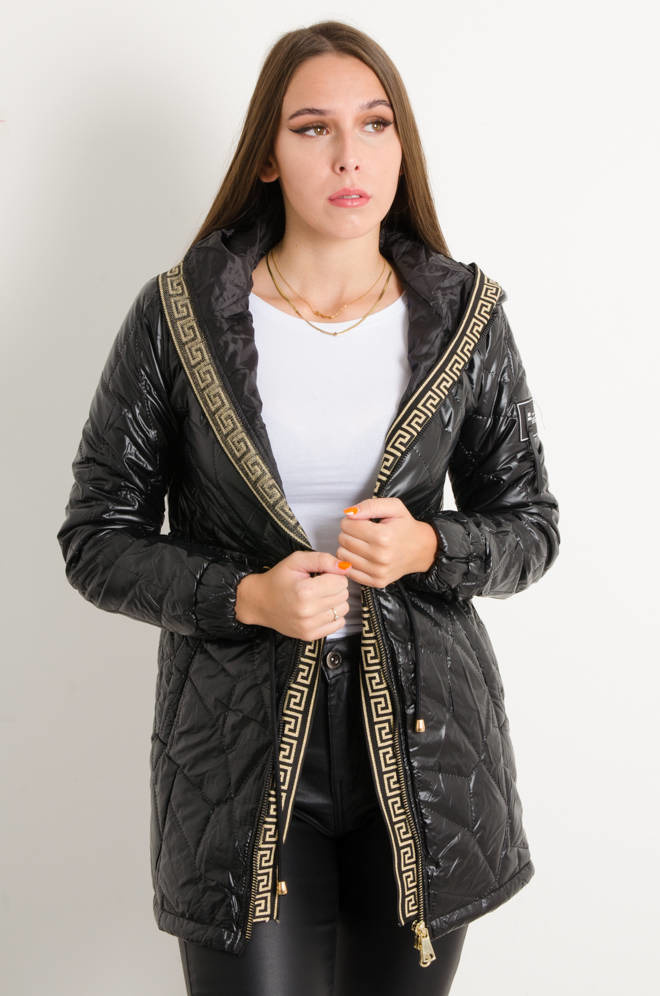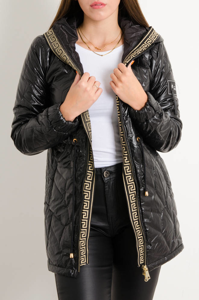 KURTKA ASYMETRYCZNA PIKOWANA WIĄZANA W PASIE- CZARNA