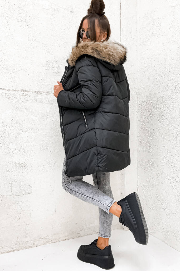 CZARNA PIKOWANA KURTKA Z KAPTUREM