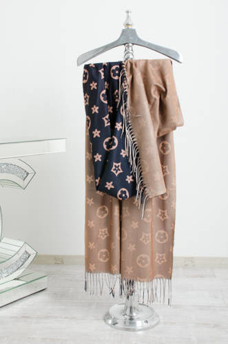 WZORZYSTY SZAL Z FRĘDZLAMI- BRĄZOWO-CZARNY
