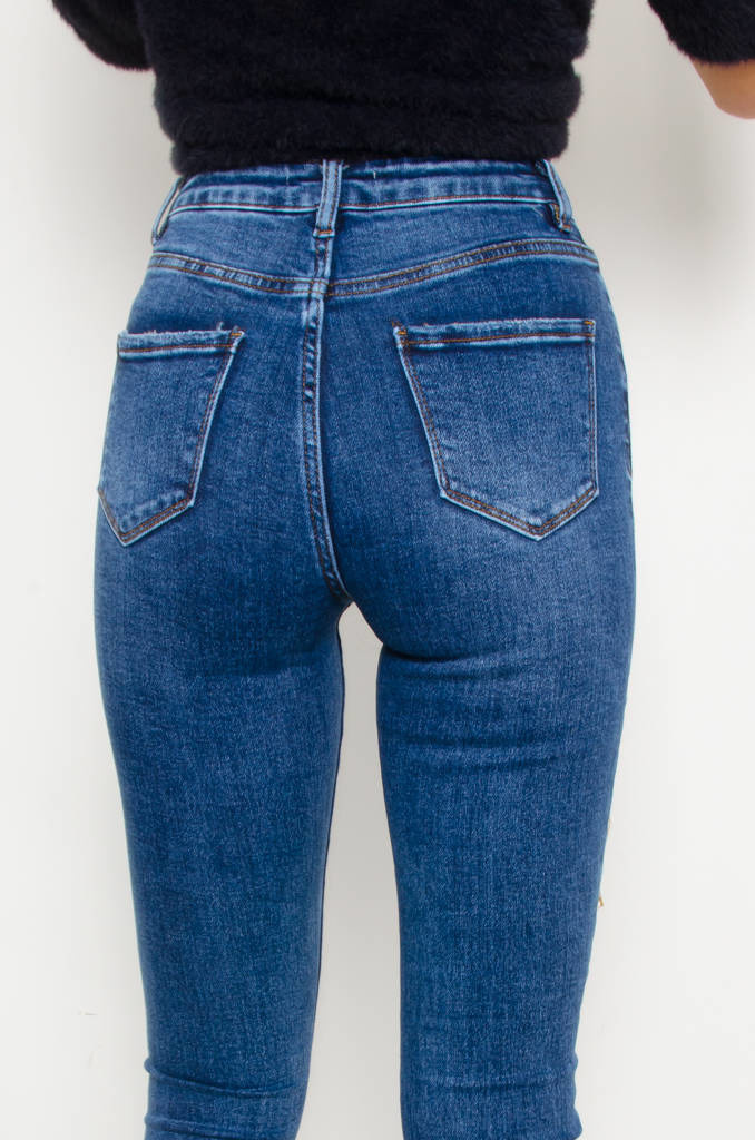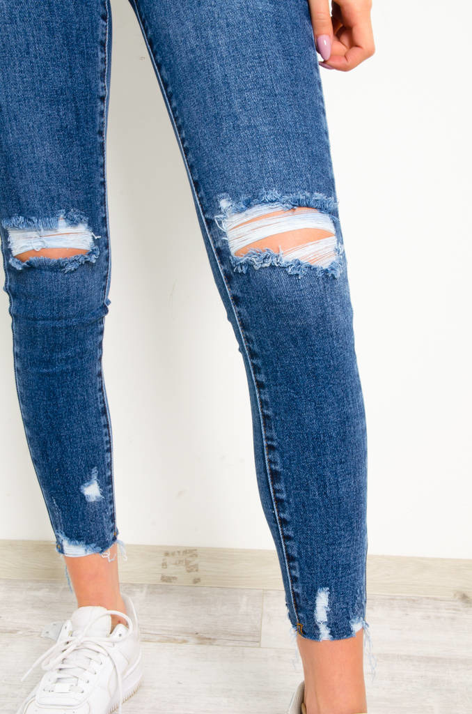 CIEMNE JEANSY Z PRZETARCIAMI- WYSOKI STAN