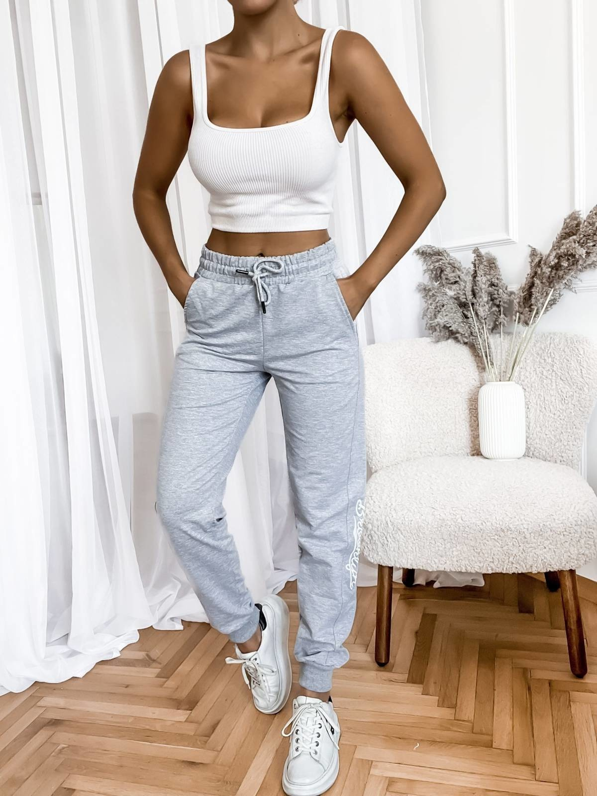 SPODNIE DRESOWE Z NAPISEM NA NOGAWCE- SZARE