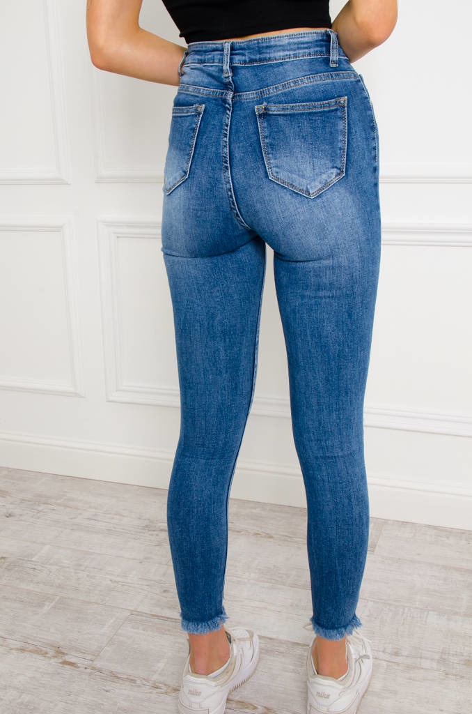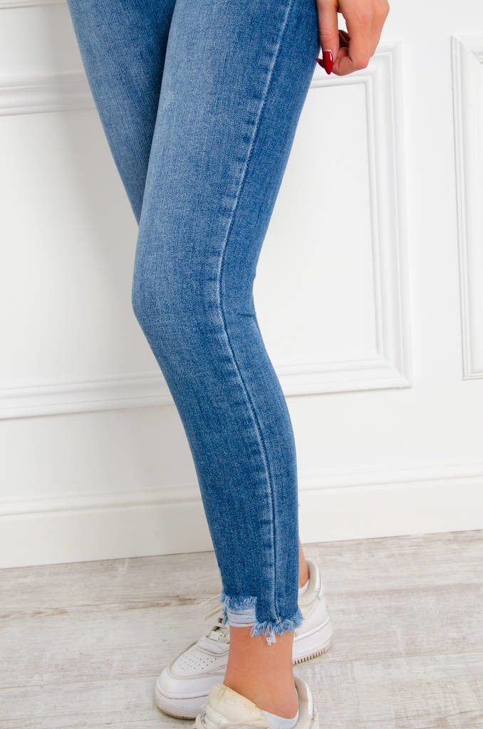 SPODNIE JEANSOWE SKINNY Z PRZETARCIAMI NA DOLE NOGAWKI- WYSOKI STAN