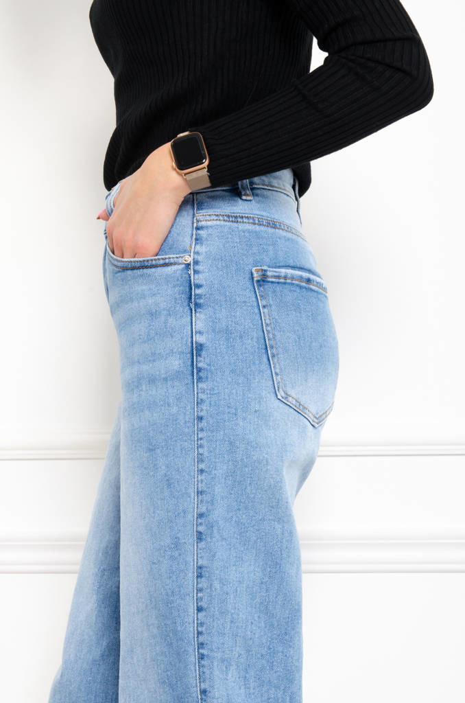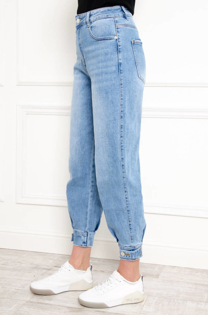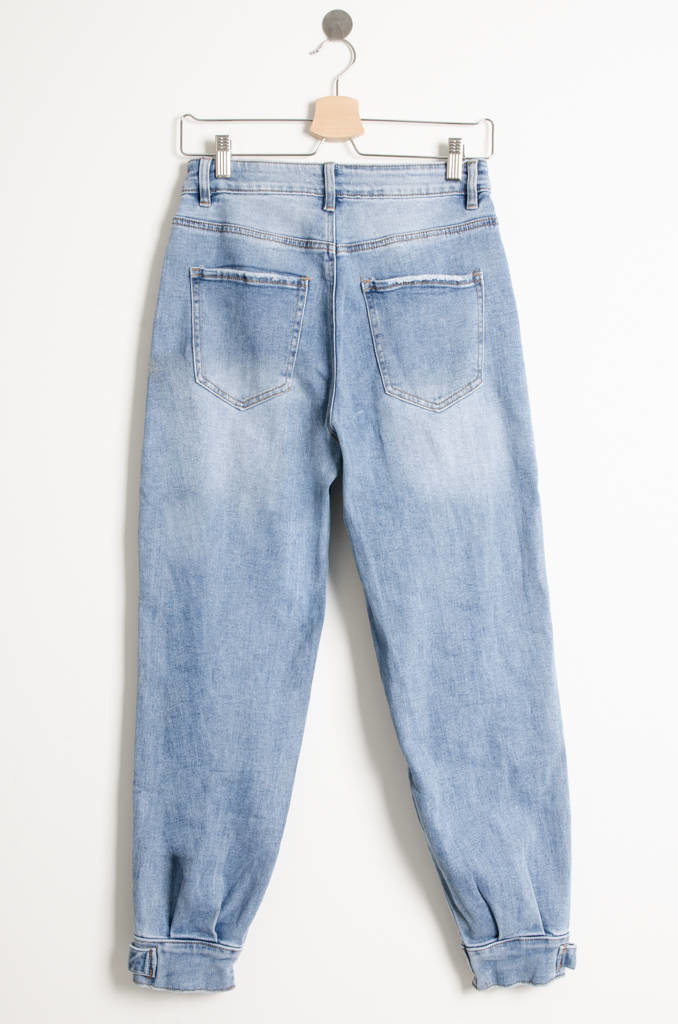 SPODNIE JEANSOWE Z WYSOKIM STANEM - ZAPIĘCIE NA DOLE NOGAWKI