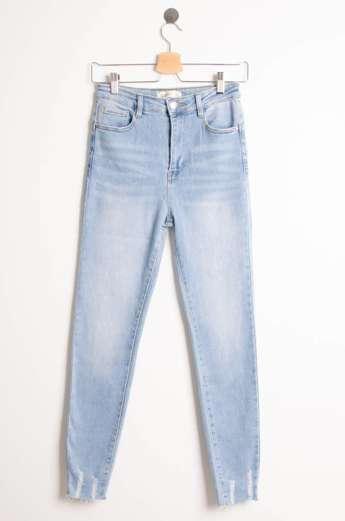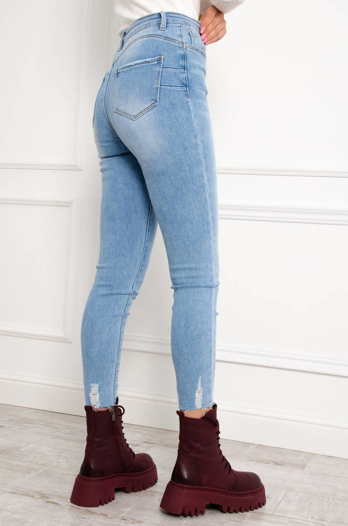 SPODNIE JEANSOWE Z SZARPANIEM PRZY NOGAWCE- WYSOKI STAN
