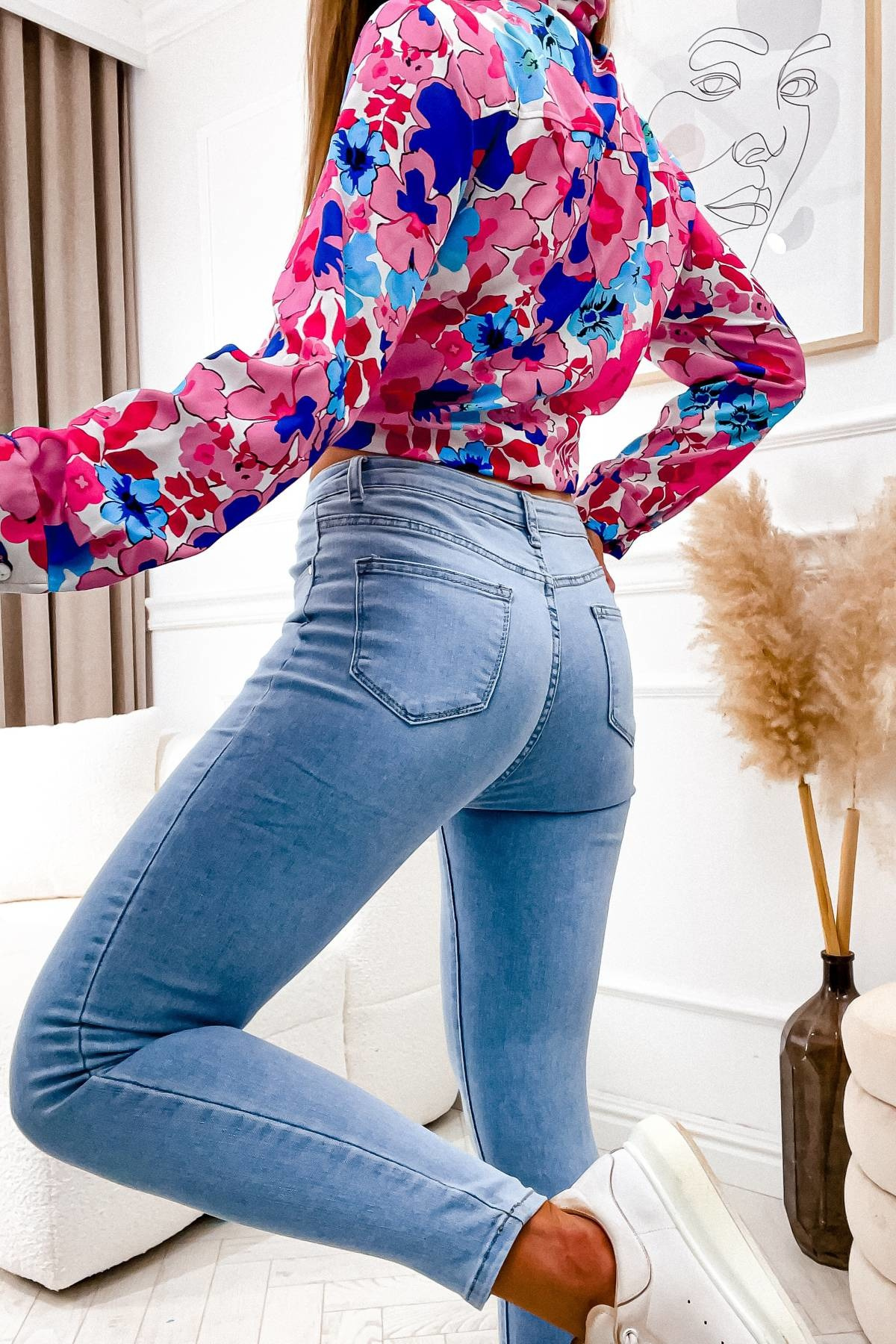 JASNE SPODNIE JEANSOWE Z GUZIKAMI- WYSOKI STAN