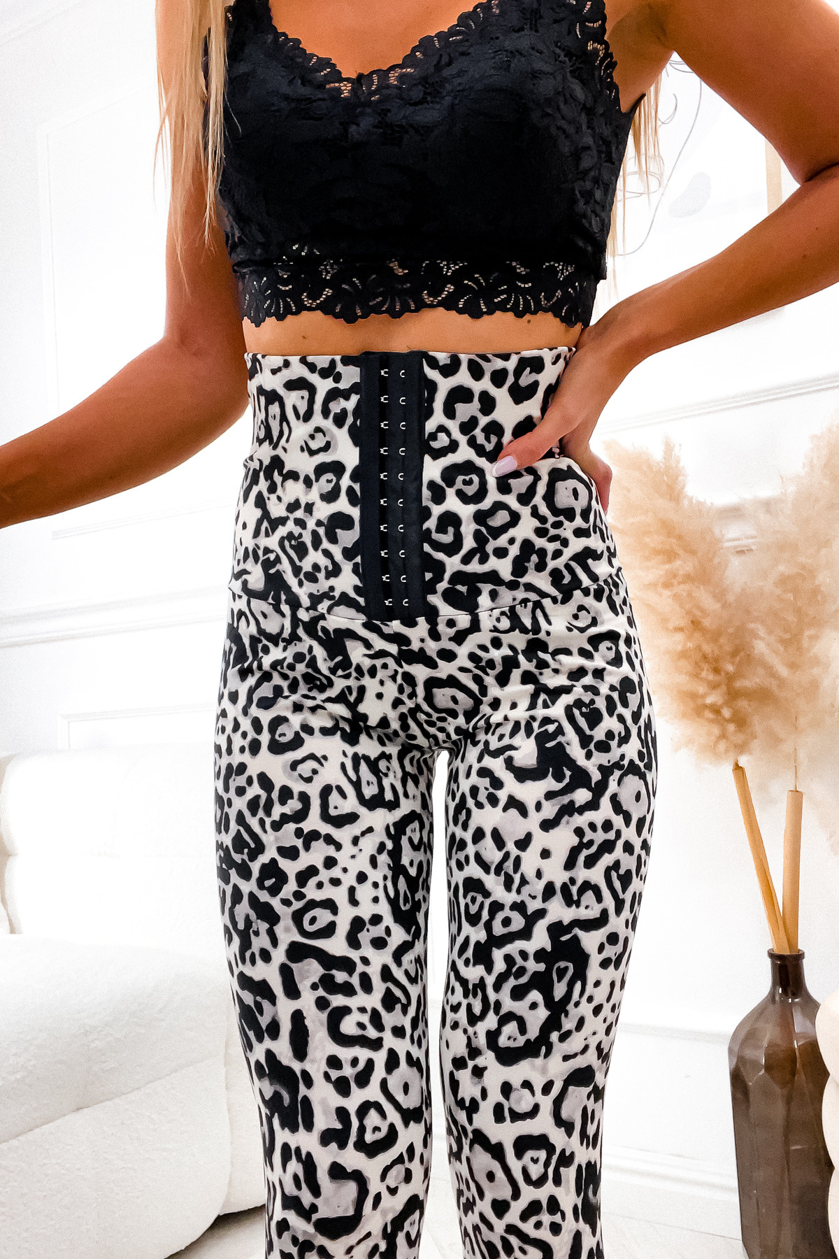 LEGGINSY MODELUJĄCE W PANTERKĘ- BIAŁE