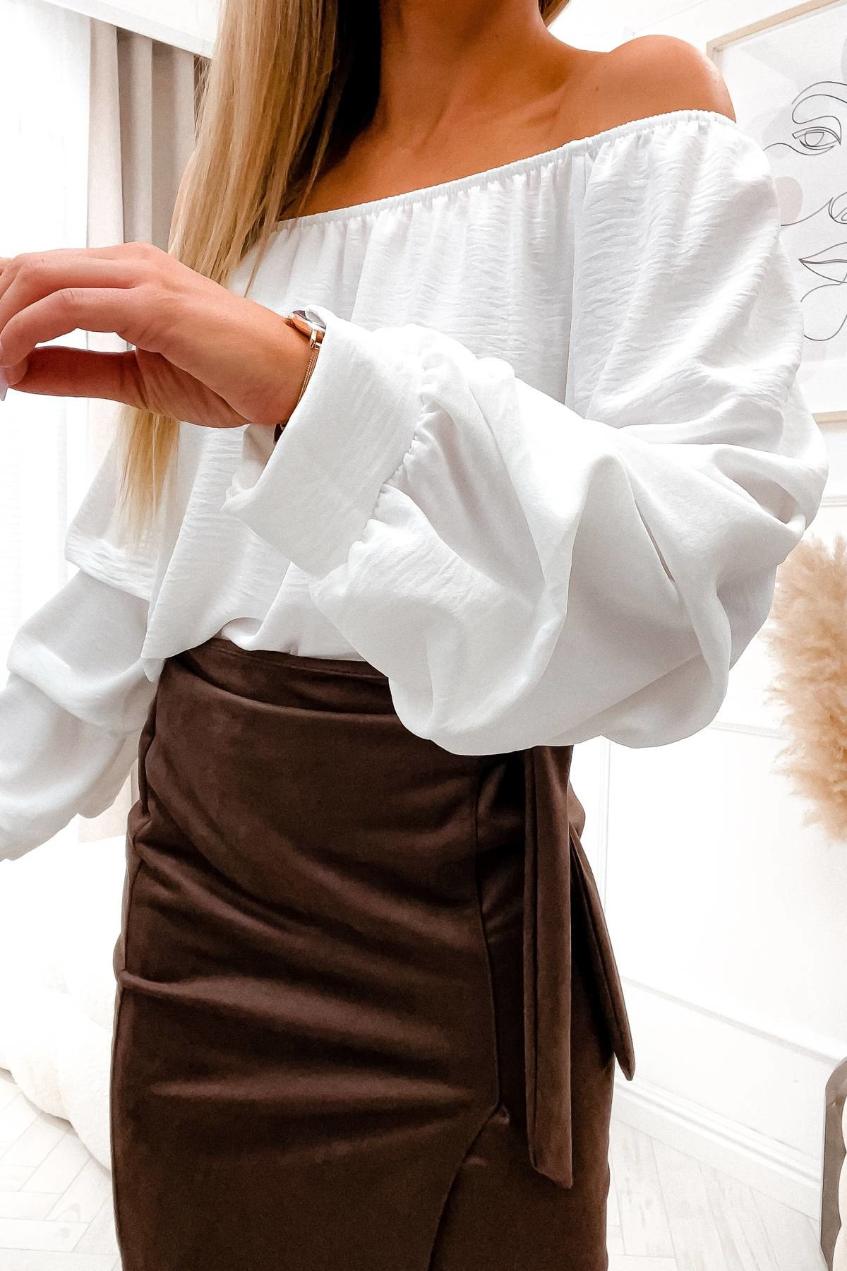 BIAŁA BLUZKA HISZPANKA Z MARSZCZONYMI RĘKAWAMI I NASZYJNIKIEM