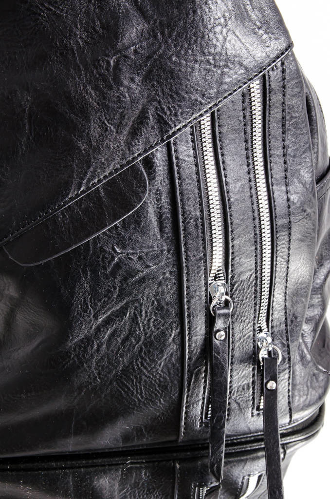 PLECAK Z IMITACJI SKÓRY Z OZDOBNYMI ZAMKAMI- CZARNY