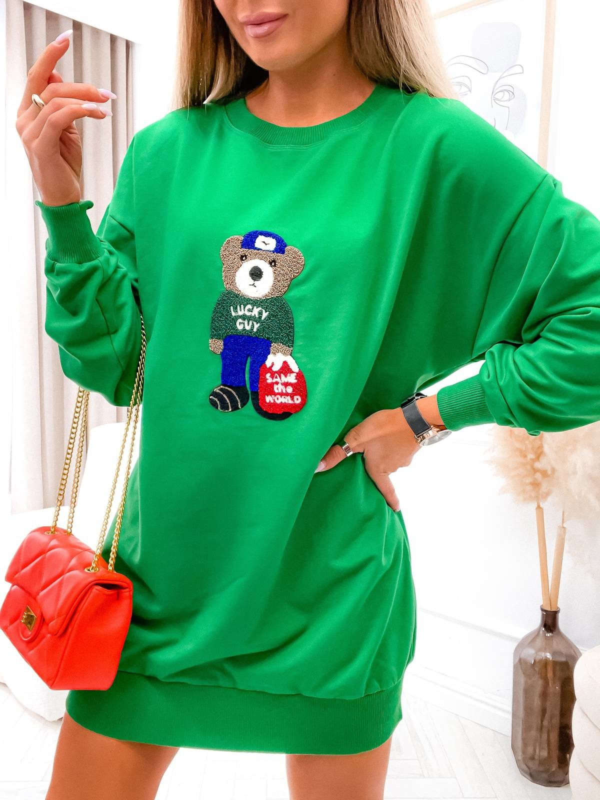DŁUGA BLUZA TUNIKA Z MISIEM- ZIELONA