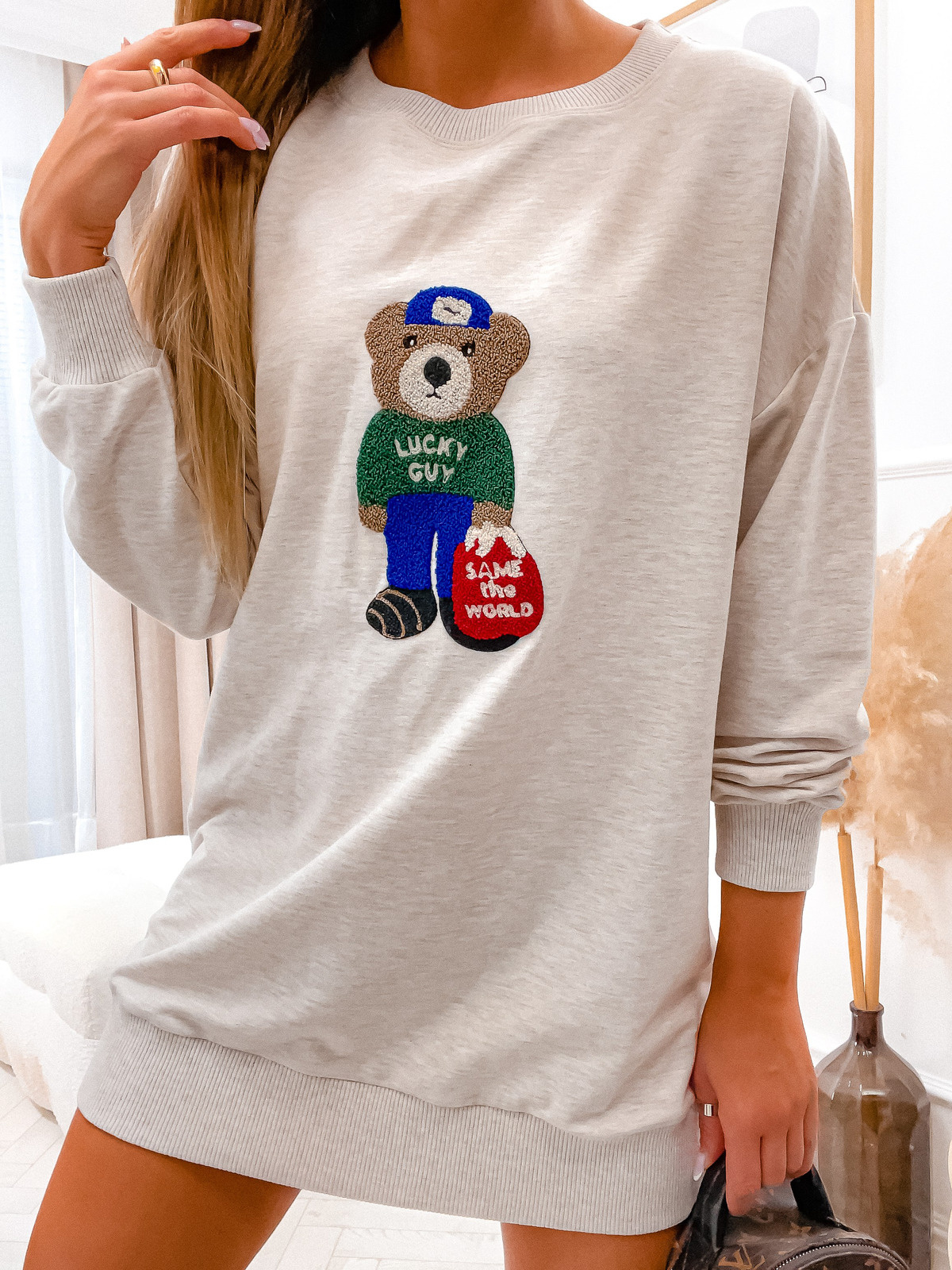 DŁUGA BLUZA TUNIKA Z MISIEM- BEŻOWA