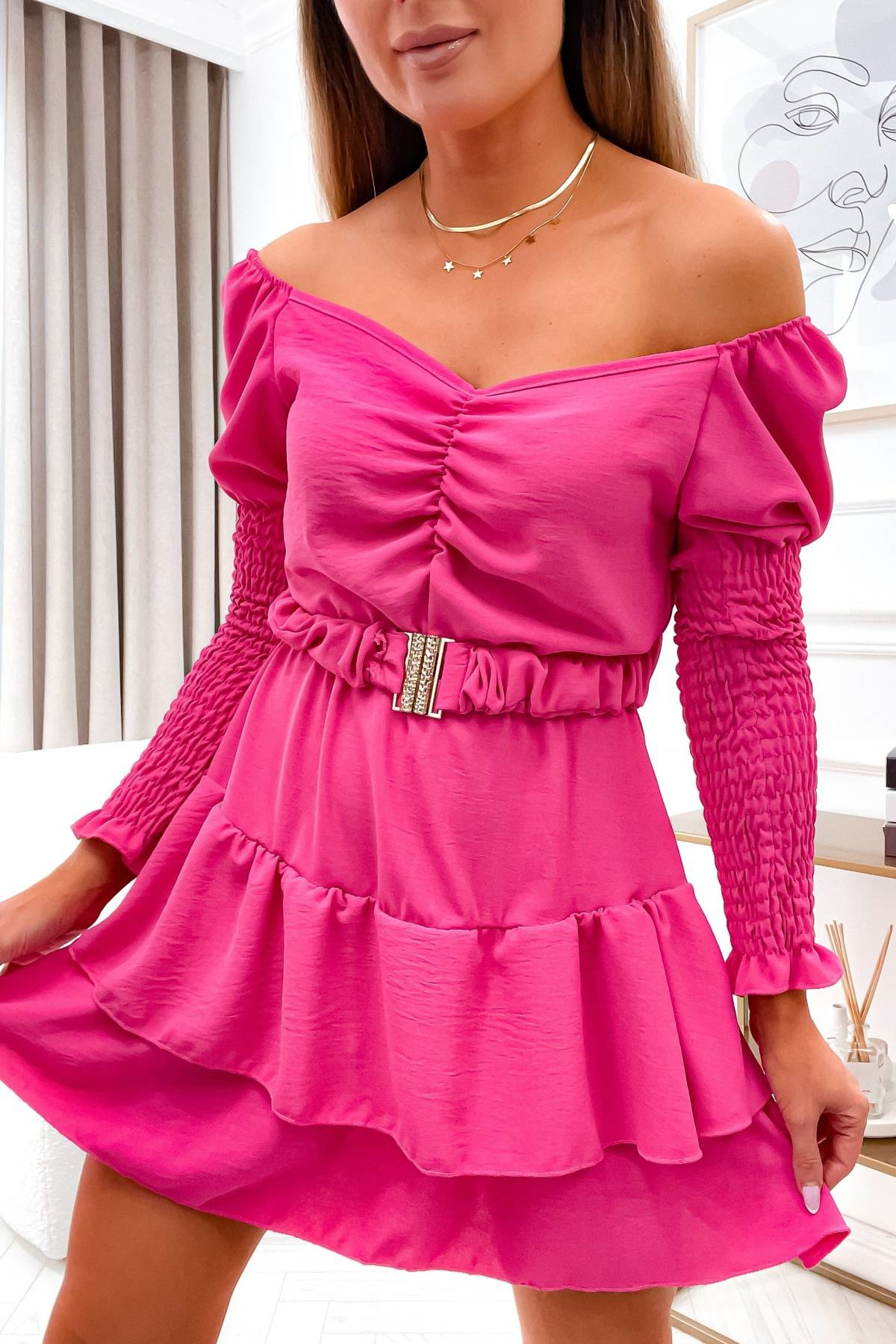 KOMBINEZON Z MARSZCZONYMI RĘKAWAMI I SPÓDNICĄ- RÓŻOWY
