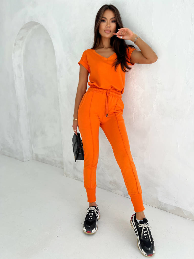 KOMPLET DRESOWY T-SHIRT+ SPODNIE Z PRZESZYCIEM- POMARAŃCZOWY