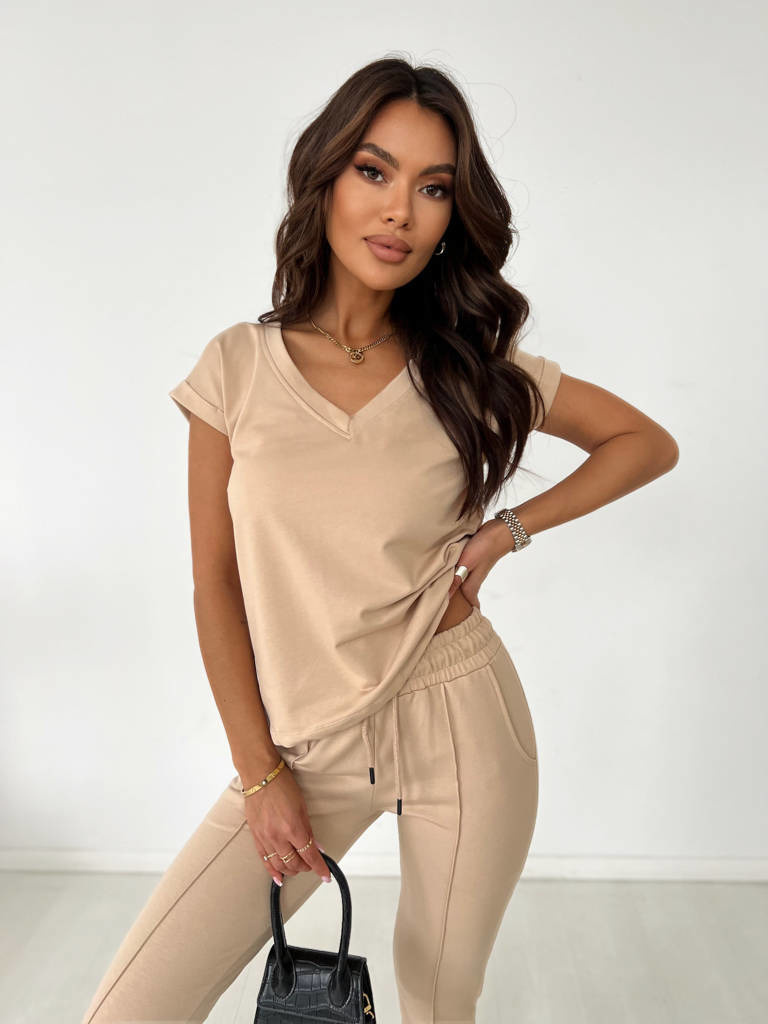 KOMPLET DRESOWY T-SHIRT+ SPODNIE Z PRZESZYCIEM- BEŻOWY