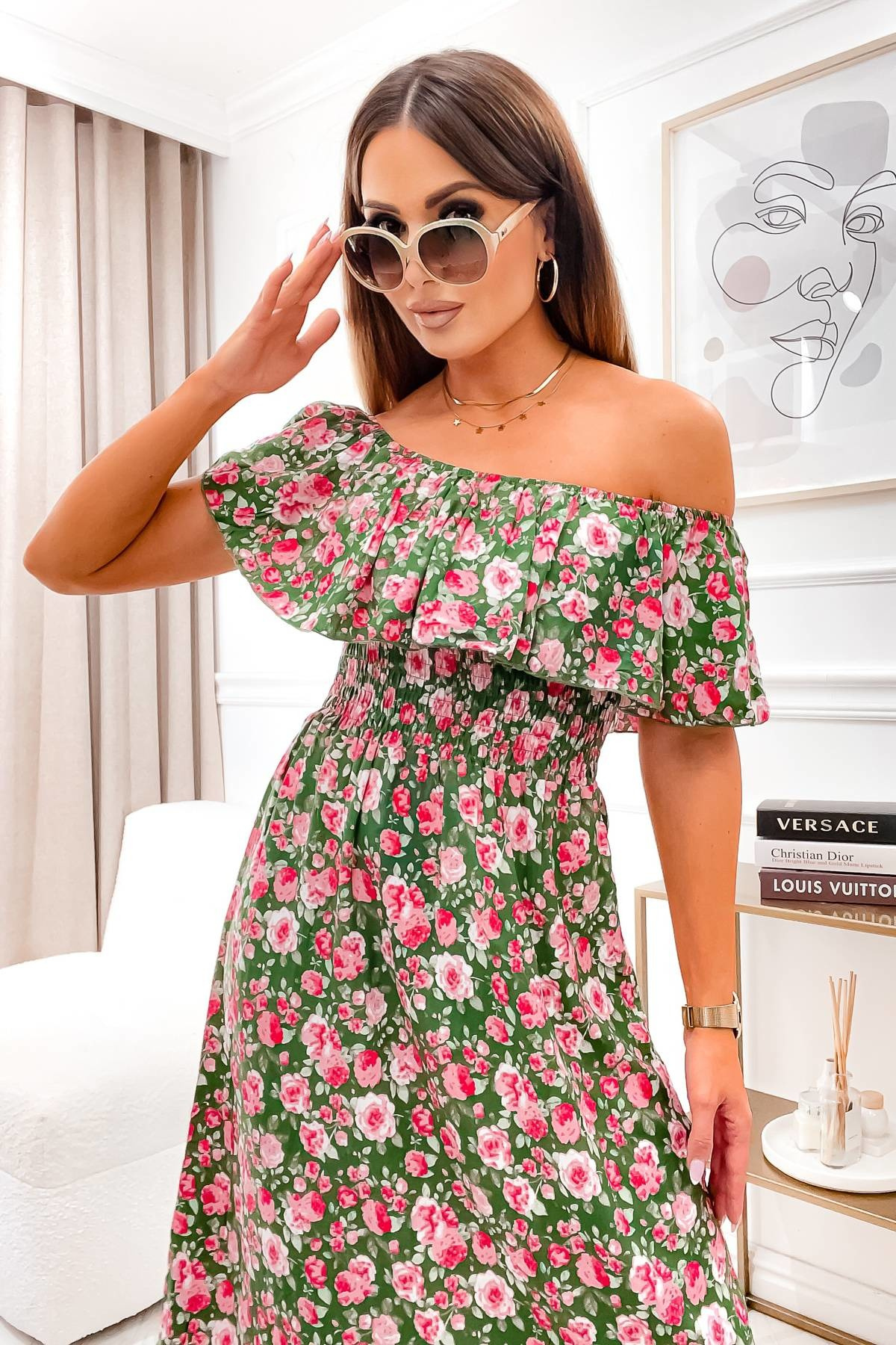SUKIENKA HISZPANKA MIDI W KWIATOWY WZÓR- ZIELONA