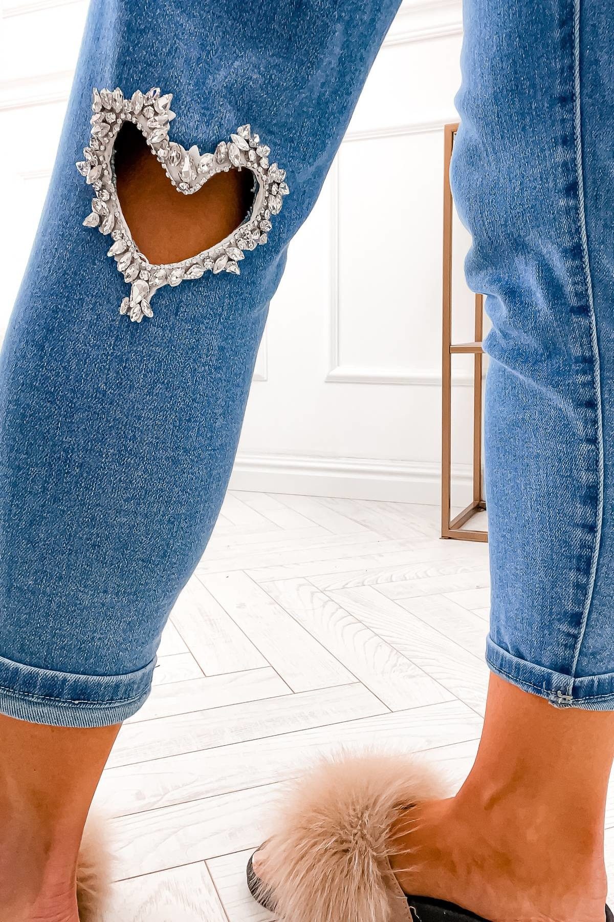 SPODNIE JEANSOWE MOM FIT Z PASKIEM I SERCEM Z TYŁU NOGAWKI