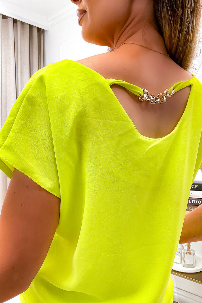 BLUZKA W SEREK Z OZDOBYM ŁAŃCUSZKIEM NA PLACACH- LIMONKA