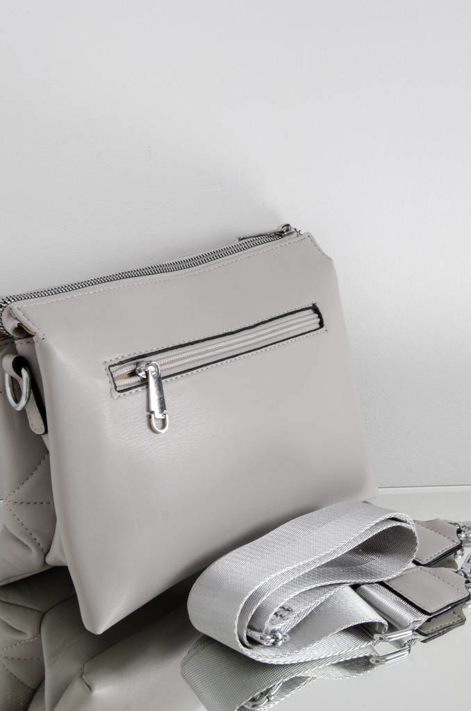 TOREBKA PIKOWANA Z MATERIAŁOWYM PASKIEM- SZARA