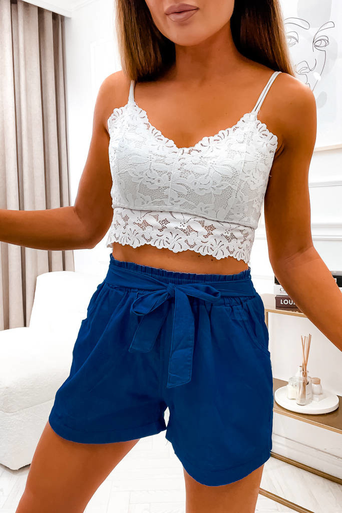 SZORTY MATERIAŁOWE Z GUMĄ I WIĄZANIEM W PASIE- CIEMNO GRANATOWE
