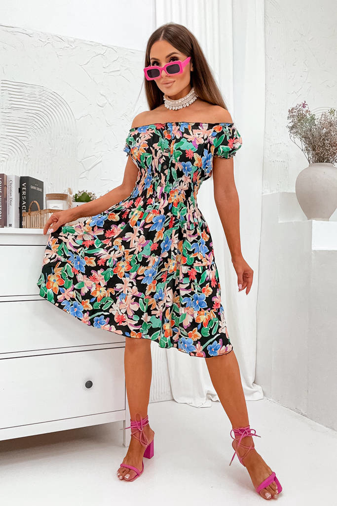 SUKIENKA W KWIATY Z GUZIKAMI I GUMĄ W PASIE- CZARNA