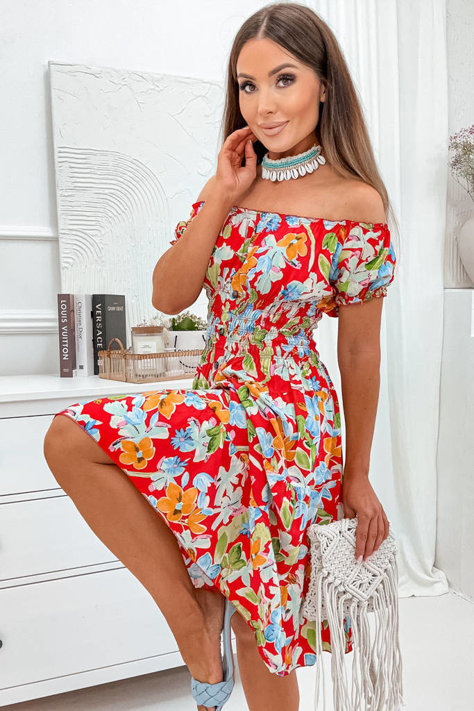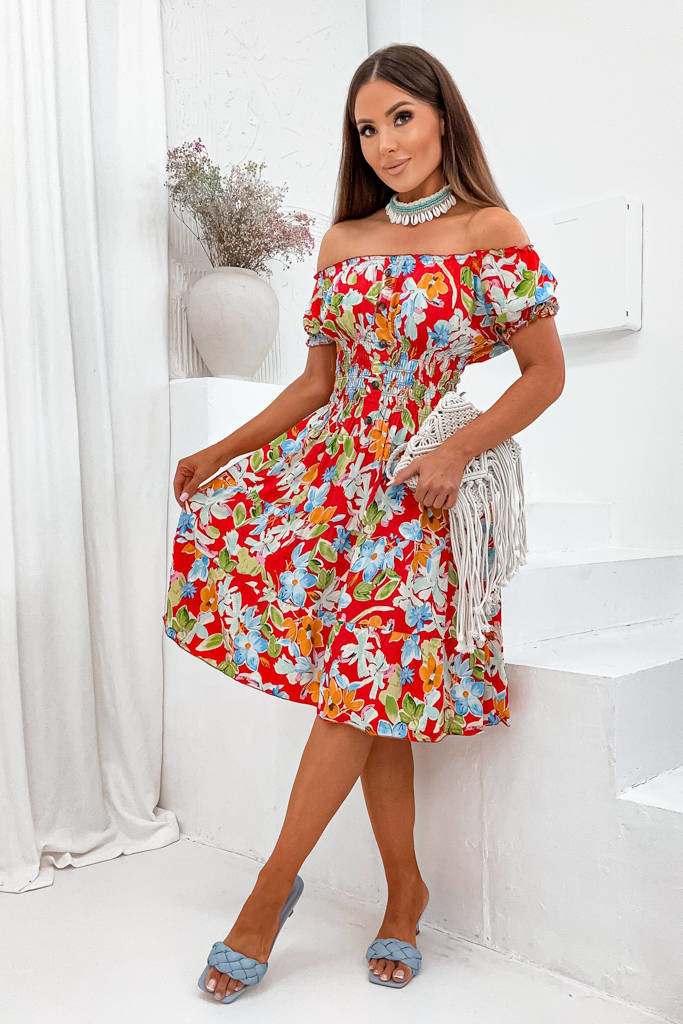 SUKIENKA W KWIATY Z GUZIKAMI I GUMĄ W PASIE-CZERWONA