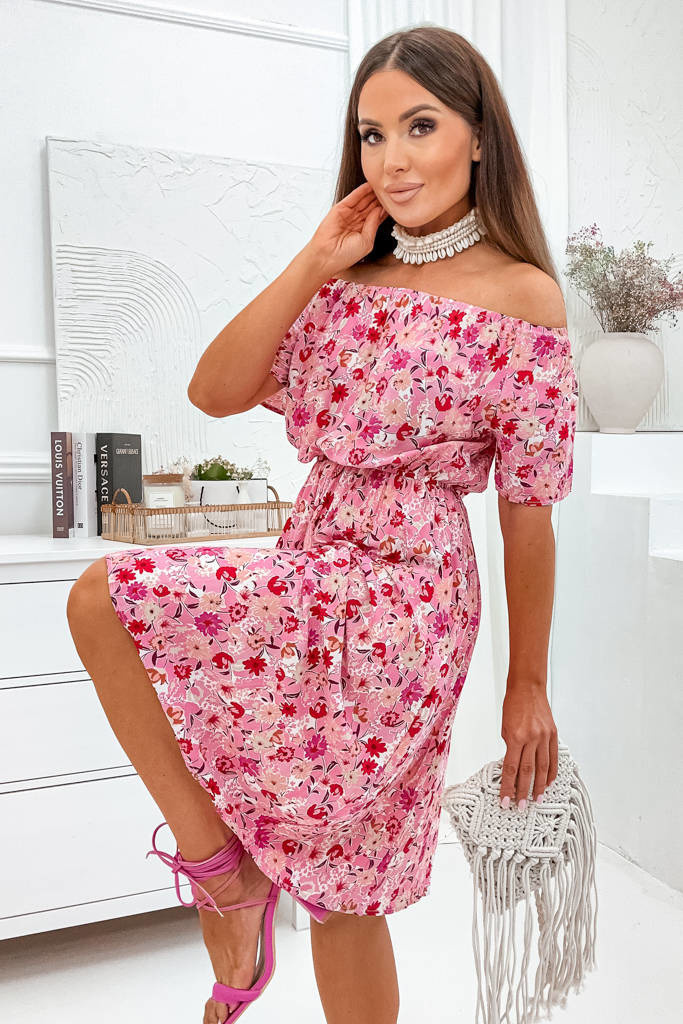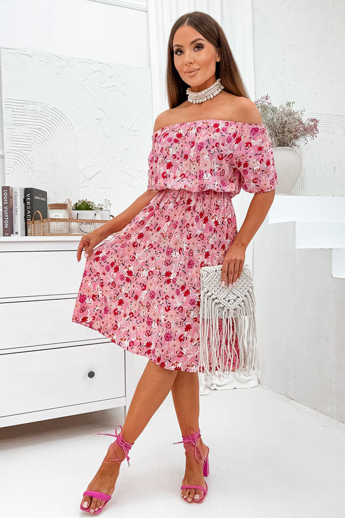 SUKIENKA W KWIATY HISZPANKA Z GUMKĄ W PASIE- RÓŻOWA