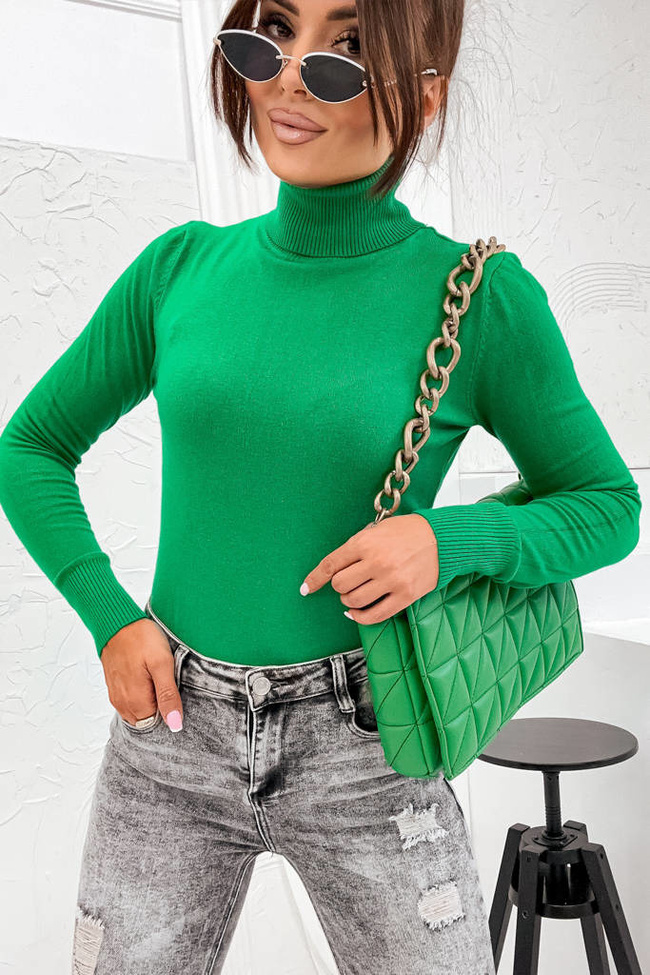 GŁADKI GOLF Z PRĄŻKOWANYM ZAKOŃCZENIEM- JASNO ZIELONY