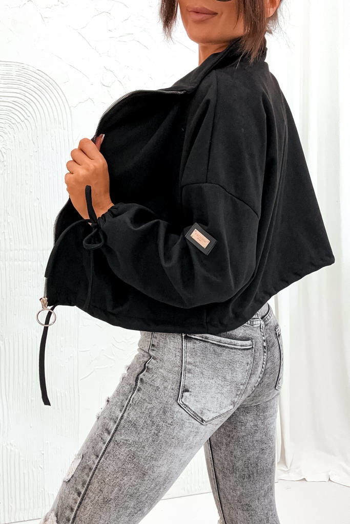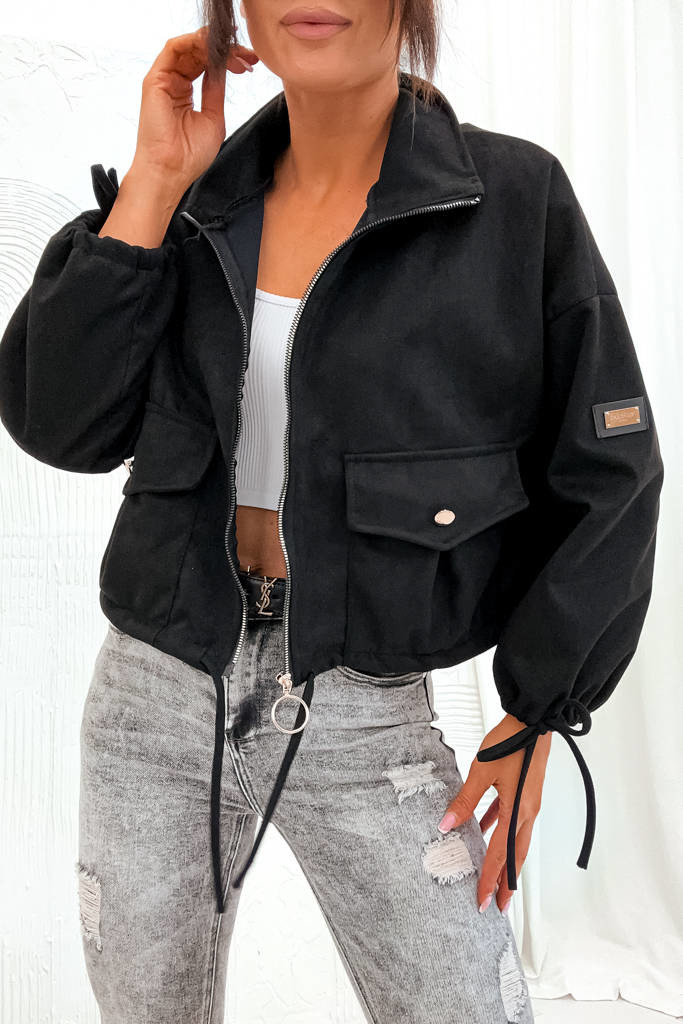KURTKA ZAMSZOWA OVERSIZE Z KIESZENIAMI- CZARNA
